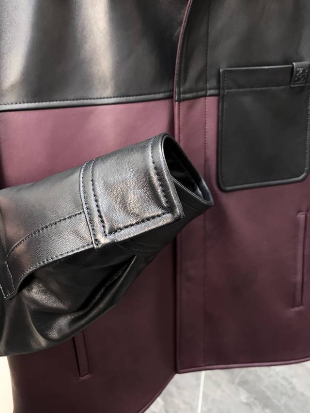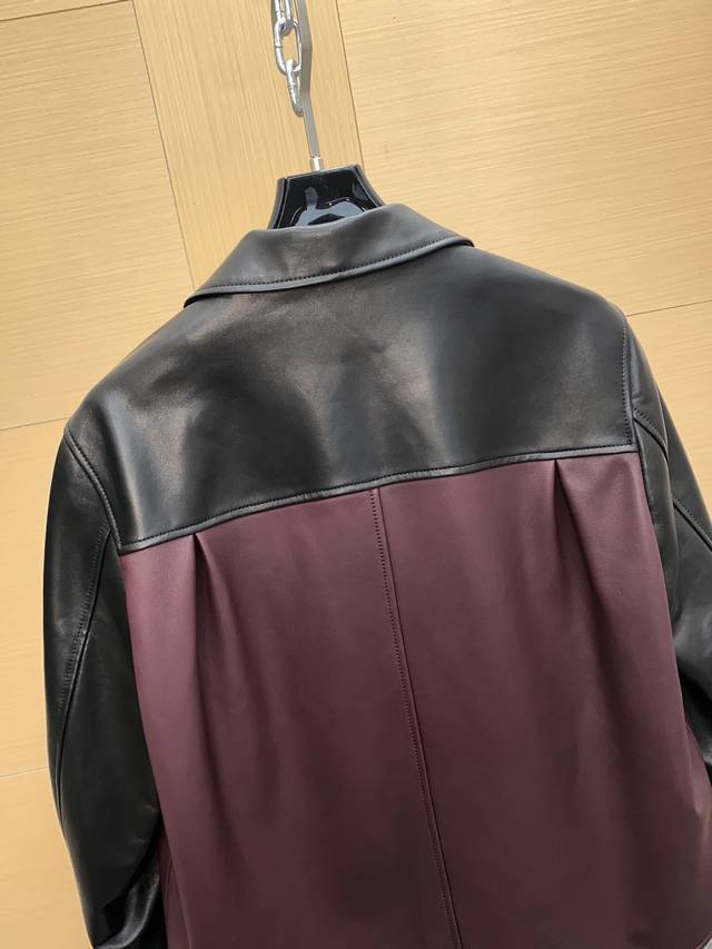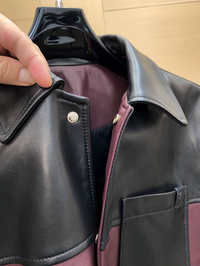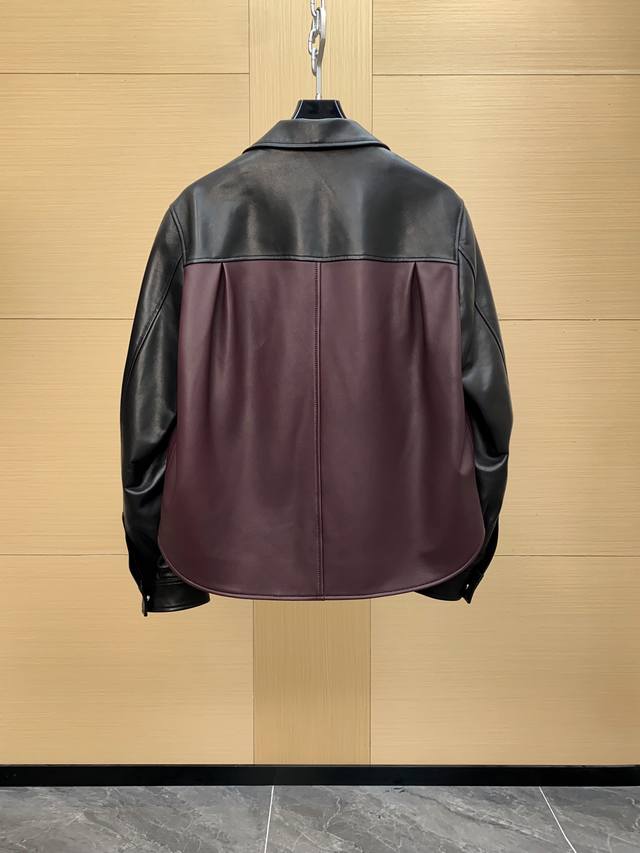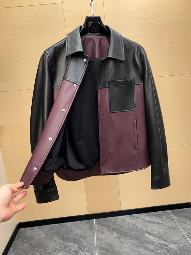 Loewe 25Fw Men's Lambskin Shirt Vintage Effect Nappa Calfskin Pullover with Classic Lapel. Made from medium-weight vintage effect Nappa calfskin. *Loose Fit*Regular Length*Classic Collar*Button-Down Cuffs*Concealed Button and Zip Front*Vertical Pockets*Interior Pockets*Fully Lined Chest Pocket with Embossed Anagram Logo. Sizes: 48-56