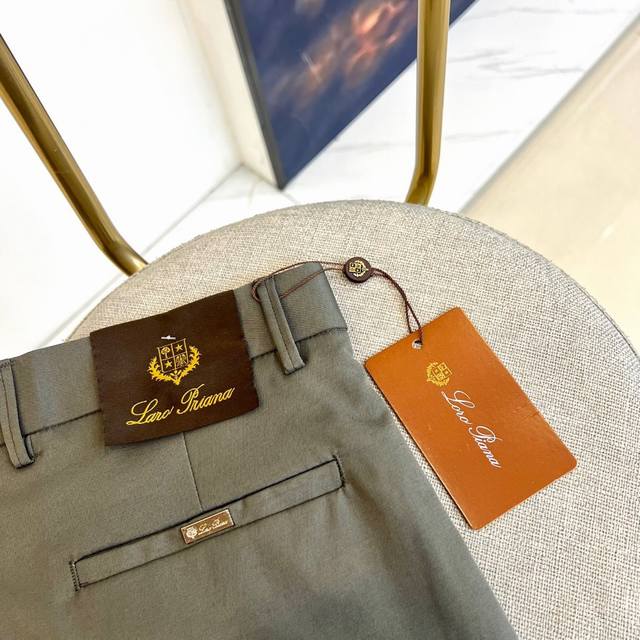 Loro Piana, Spring/Summer 2025 New Arrival Business Casual Pants. Made with a high-quality blend of premium fabrics in a perfect ratio. The high-density, fine, and crisp texture of the fabric offers excellent wrinkle-resistant and non-iron properties, exuding a luxurious feel at first touch! A woven waistband signifies the brand identity, while the side logo and small metal logo on the back pocket add a touch of elegance. Custom-made metallic logo accessories demonstrate meticulous attention to detail and exceptional craftsmanship. The stitching is fine and even, making these pants suitable for both business and casual occasions. Sizes 29-38 (excluding sizes 35 and 37).