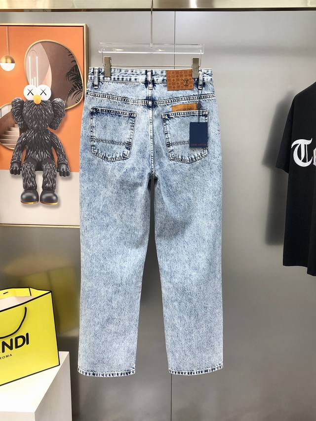 Louis Vuitton 2025 Early Autumn New Men's Loose Straight Leg Jeans Official Website Synchronized Hot Selling Item High-End Custom Original Quality Simple and Stylish Back Pocket Embroidered Logo Label Design Custom Imported Denim Washed Denim Pure Cotton Fabric Original Accessories Exquisite Workmanship Cool and Energetic Full of Softness, Delicate Comfort, Breathable Extremely High Matching Rate and Durability Outstanding Counter Quality Super Handsome and Stylish When Wearing Sizes: 28-38 Sizes 35 and 37 Not Available Ships the Next Day