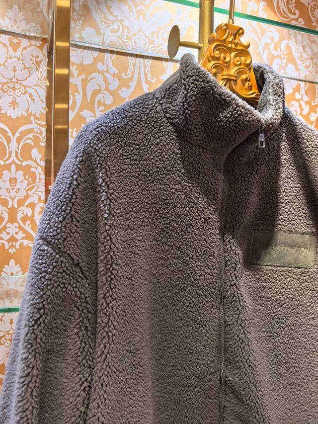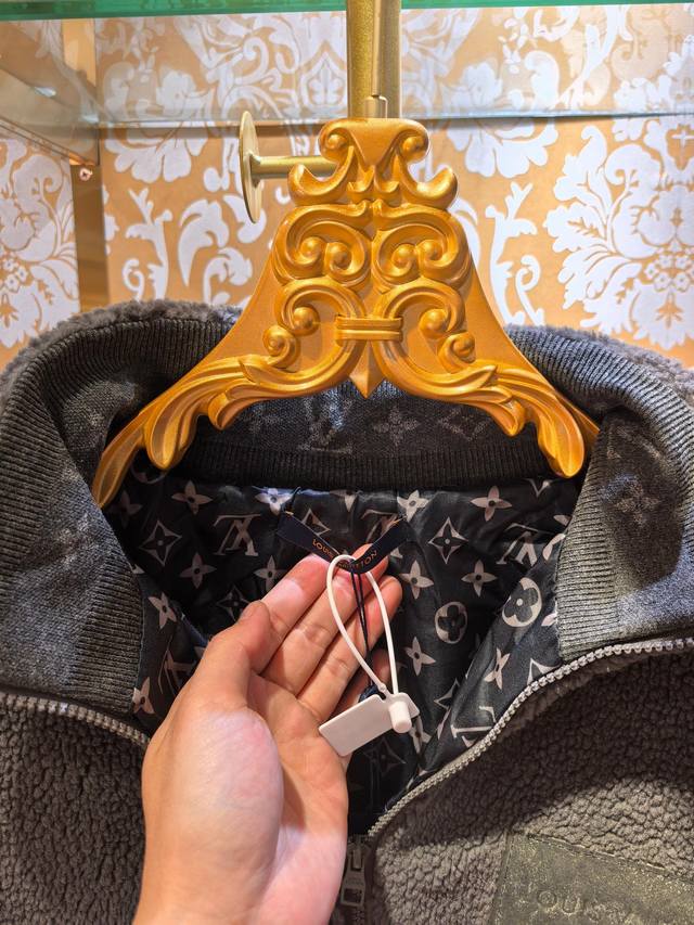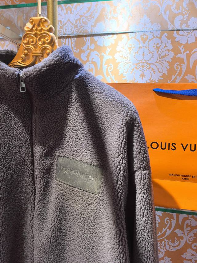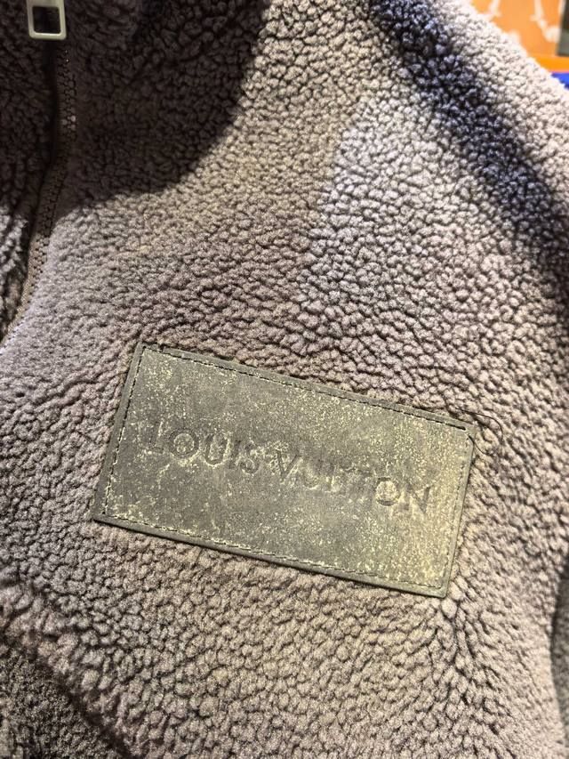 Louis Vuitton 2025 Fall/Winter New Casual Luxury Collection Grey Lambswool Zip-Up Jacket. Made of lambswool, this jacket is soft and fluffy. It features a stand-up collar, zip-up closure, and an overall casual yet warm style. The front has an aged leather brand label, and the zipper pull is engraved with "Louis Vuitton." The knit cuffs feature a subtle pattern reminiscent of the brand's classic design, while the lining is covered in Louis Vuitton's iconic monogram pattern. These details highlight the brand's identity. Combining luxury craftsmanship with a casual streetwear silhouette, this jacket embodies the "high-end casual" style in fashion, suitable for consumers who value brand quality and comfort. The fabric is primarily 100% lambswool, offering a soft, fluffy feel and excellent warmth, further enhancing its luxurious feel and brand recognition. Colors: Grey, Khaki. Sizes: M-2XL.