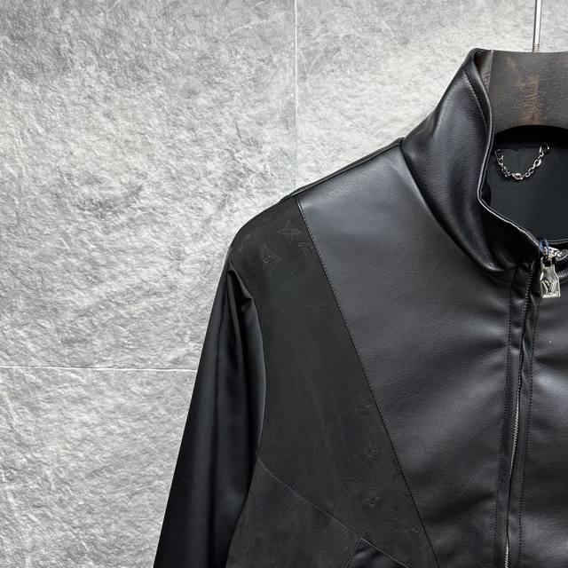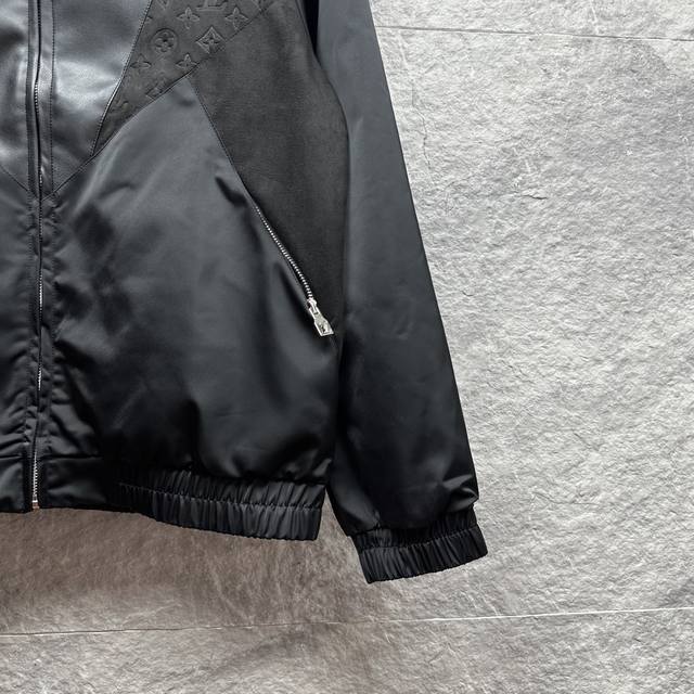 Louis Vuitton 2025 New Couple Jacket with Leather and Suede Trim - High-Quality Version. Made with custom polyester composite fabric for excellent breathability. Original custom hardware and lining. Pill-resistant, wear-resistant, comfortable, soft, and wrinkle-resistant. Original packaging with original washing tags. Sizes: M, 3XL. Color: Black.