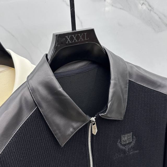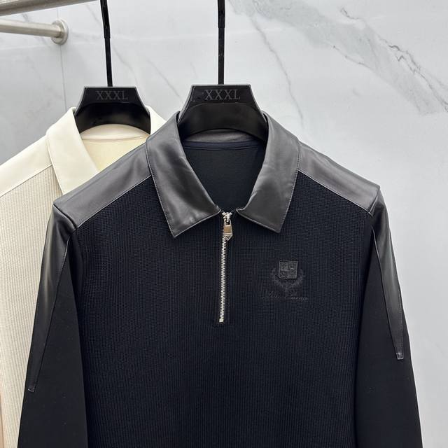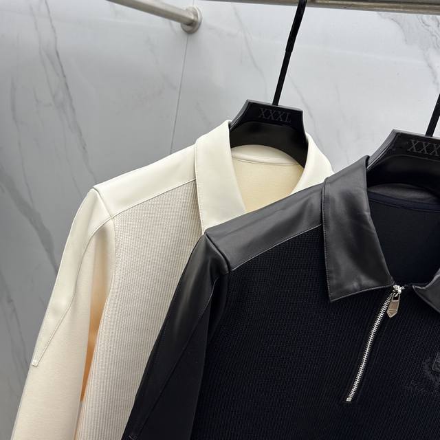 Lp2540Ss Early Autumn New Arrival: Lapel Leather Zipper Sweatshirt. Made with exclusive custom-designed air-layer cotton fabric, featuring a simple, clean, and crisp cut. The fabric is soft, smooth, and quick-drying, offering a crisp and stylish look. The three-dimensional tailoring ensures a high-standard fit and a perfectly proportioned silhouette! It's not too tight, and the use of so many top-quality materials creates an unparalleled high-end product with a super flattering fit! Sizes: M-3XL