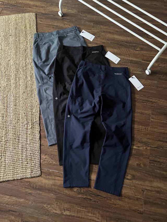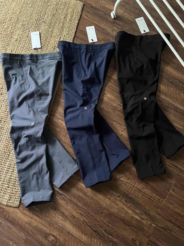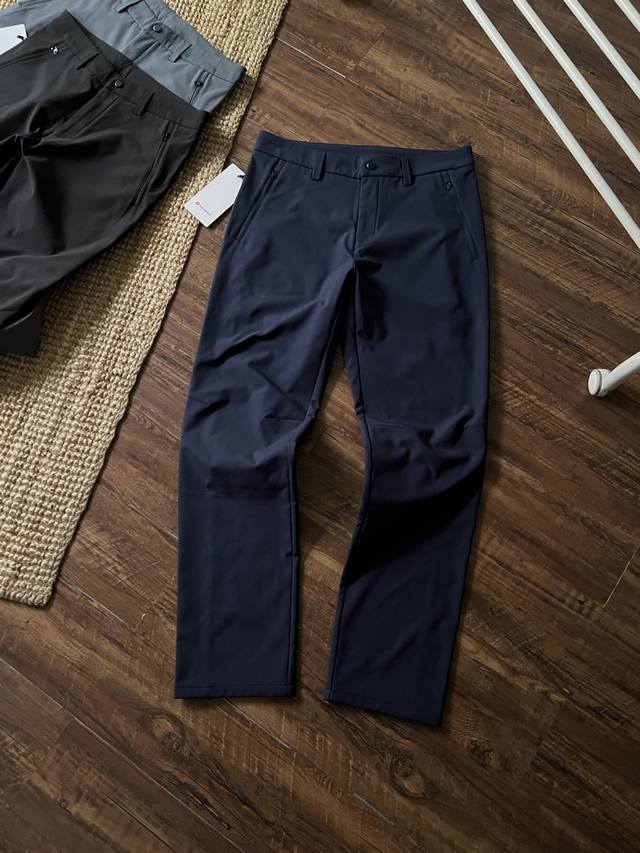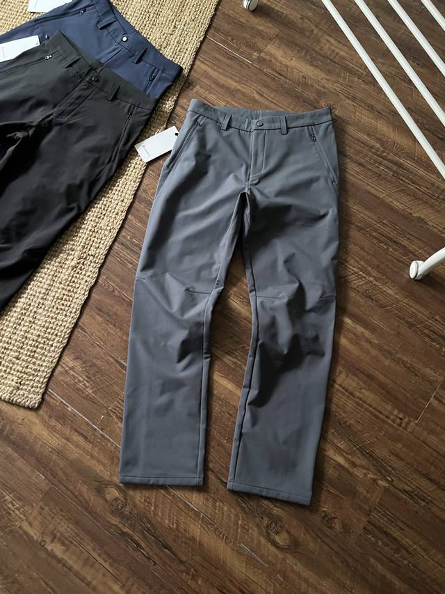 Lululemon Men's Outdoor 3D Cut Fleece Softshell Business Casual Pants, combining scratch resistance, abrasion resistance, water repellency, breathability, and quick-drying properties, easily handling commuting, business trips, or outdoor sports. 3D three-dimensional cutting with curved knees, a large triangle crotch, and a split back waistband conforms to the body's curves, preventing constriction and deformation even after prolonged sitting, squatting, or cycling. The five-proof fabric, a nylon/spandex blend, is water-repellent, oil-repellent, anti-static, and scratch-resistant. Ideal for outdoor adventures, commuting, and road trips. The DWR water-repellent treatment causes water droplets to bead up and dry quickly with a shake. Practical pockets include a hidden zippered pocket and deep slip pockets. The pants have a three-dimensional, slimming cut, a slightly straight leg that flatters the leg shape, and a loose, fitted waist with an internal drawstring to suit different body types. The fabric is not only water-repellent but also quick-drying and anti-static, making them easy to care for. Whether for city commuting, business meetings, or weekend hikes and cycling, Lulu softshell pants offer a perfect balance of comfort, functionality, and style. Colors: Black, Gray, Navy Blue. Sizes: M-4XL.
