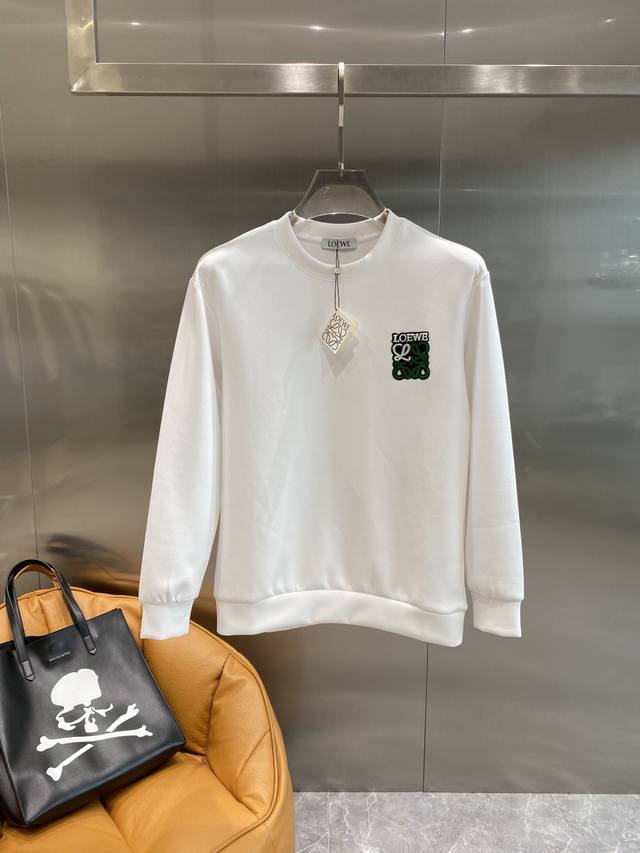 2025 Autumn/Winter New Arrival Air Layer Crew Neck Sweatshirt, featuring the brand logo on the front, creatively reinterpreting the brand's iconic design. Made with 400g Lyocell air layer fabric, its characteristics include: soft, breathable, warm, comfortable, lightweight, and with a good drape. The quadruple fiber structure makes the fabric less prone to wrinkles. Matching ribbed collar, cuffs, and hem; Colors: Black, White; Sizes: XS-L; Available the next day.