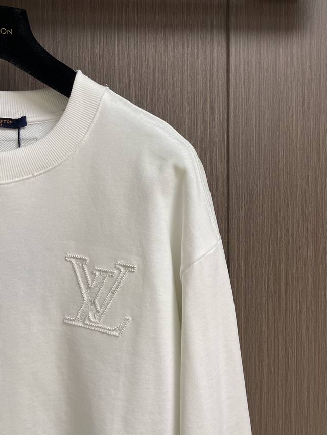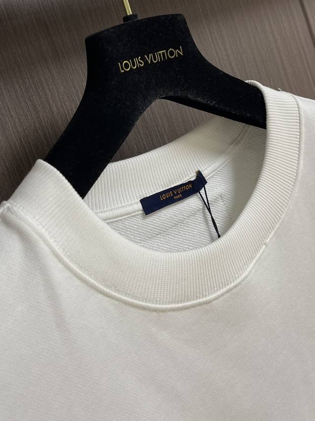 Lv 2025Ss Autumn/Winter New Crew Neck Sweatshirt. Exquisite craftsmanship, crew neck design, specially made 400g pure cotton fabric upgraded with washed large terry cloth, soft and comfortable technical fabric, custom original ribbing, extremely high-end, exquisite craftsmanship, looks incredibly stylish on. Sizes: S-XL