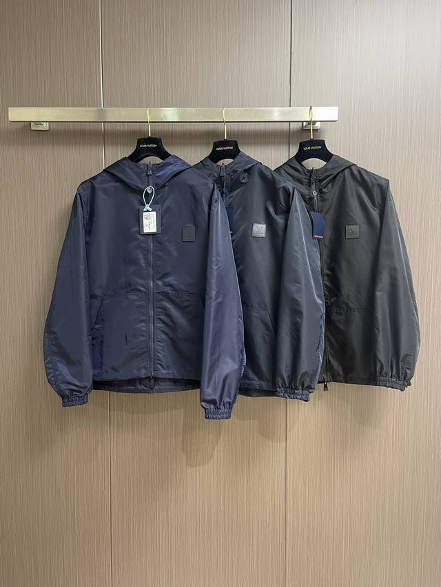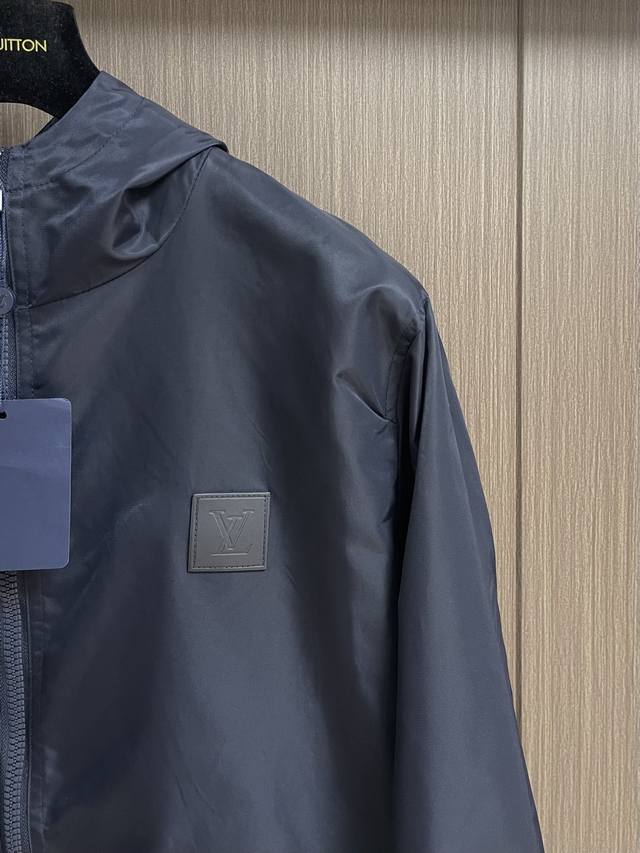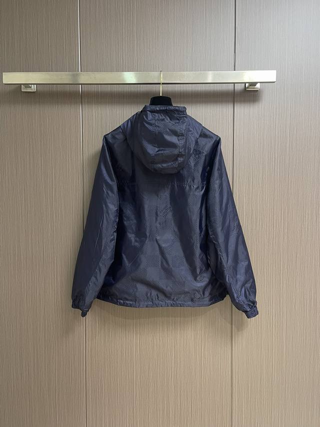 Lv 2025Ss New Reversible Windproof Hooded Jacket, made from waterproof recycled nylon, making it a vibrant choice for the transitional seasons. Adorned with Marque L.Vuitton Deposee embossed leather patches, flipping them reveals a full-width Damier jacquard pattern, with the Marque L.Vuitton Deposee logo subtly hidden within! Sizes: S-XL