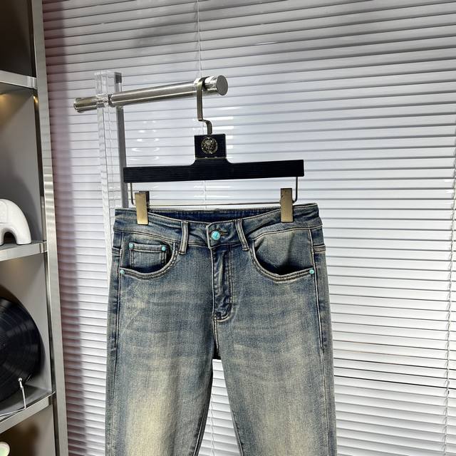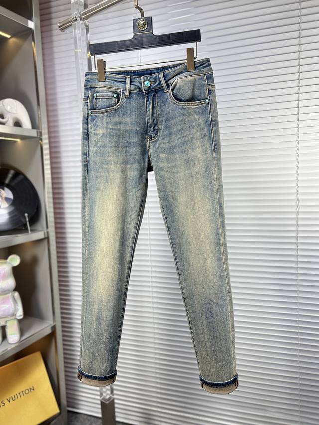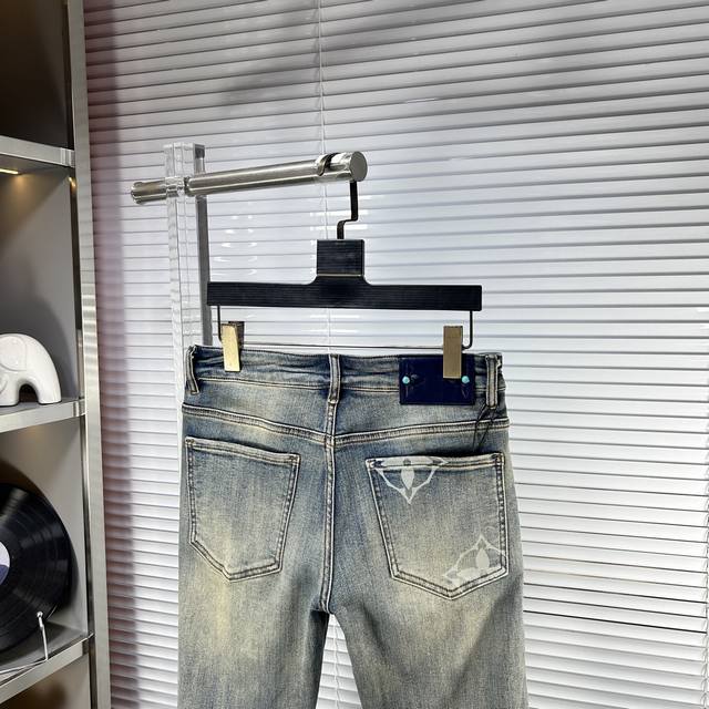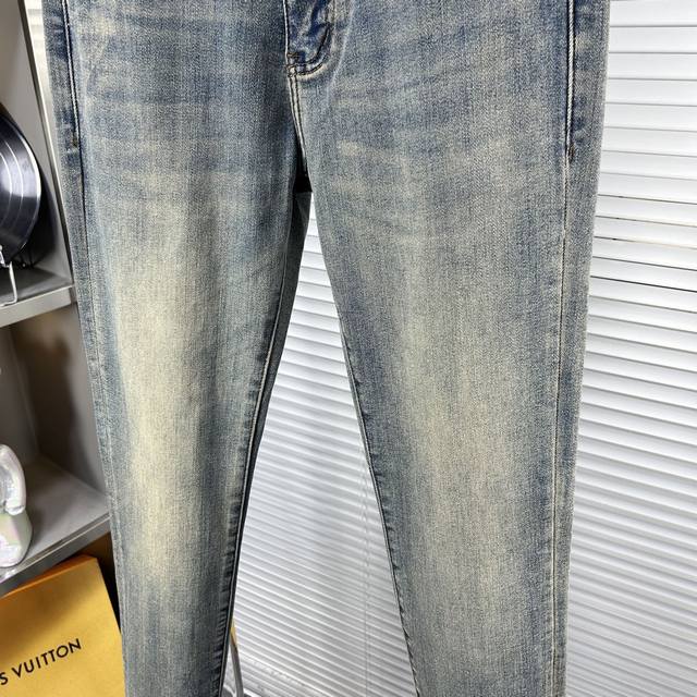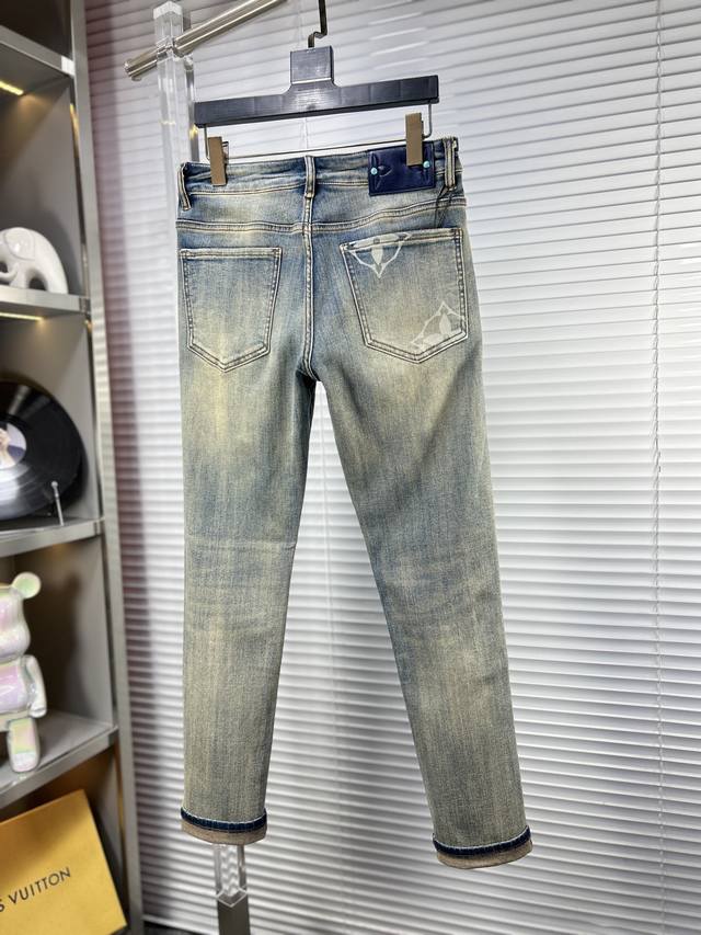 Lv* Louis Ss25 Autumn/Winter New Men's Jeans - Excellent elasticity fabric. Exclusively available, synchronized with the official website. Stylish and elegant, made with original color yeast wash process, selected imported heavyweight denim fabric, adorned with boutique hardware, genuine leather tag, and exquisite stitching. A must-have. Sizes: 29-38 (No size 37)