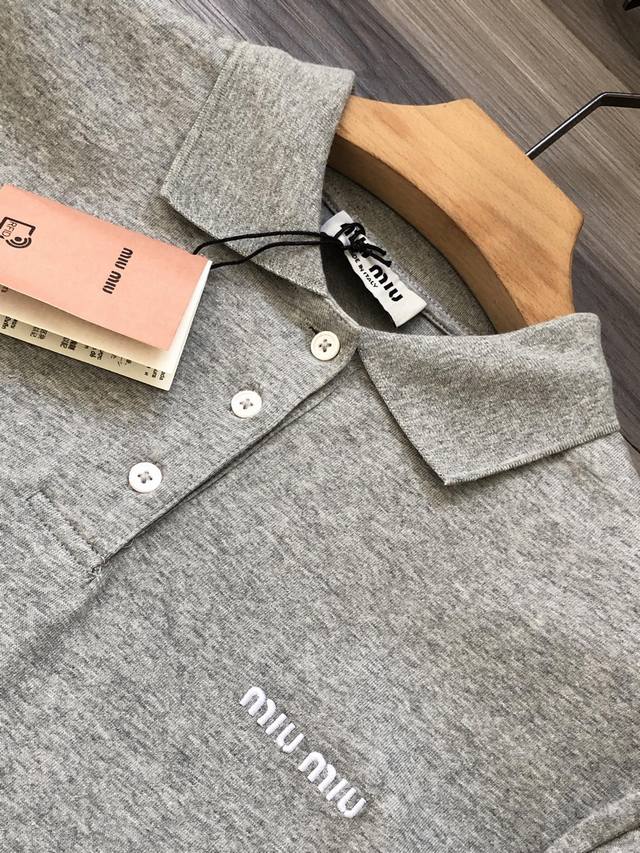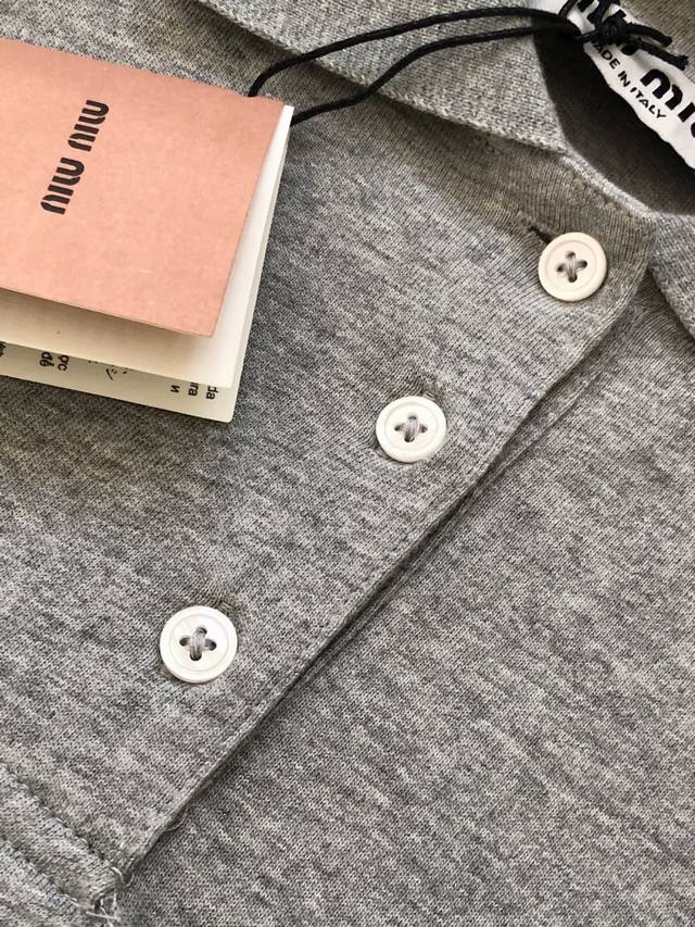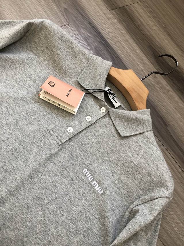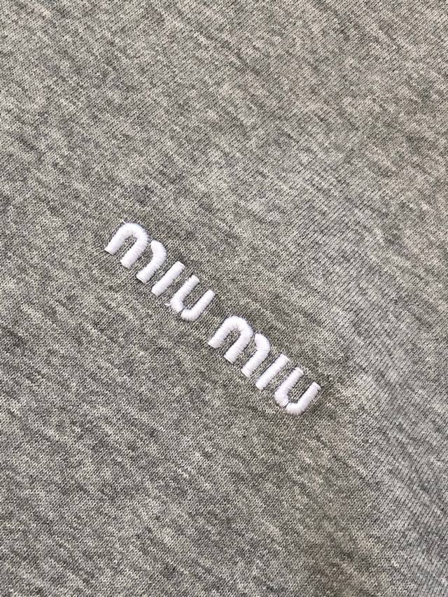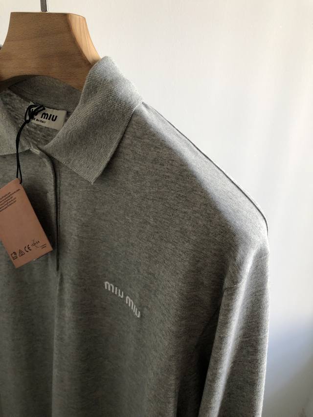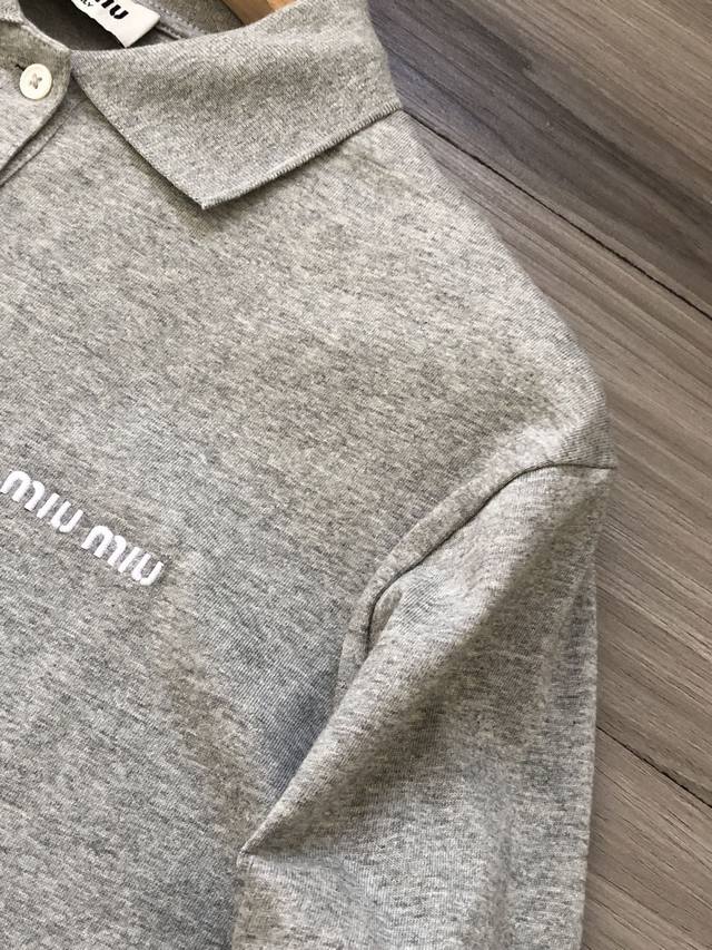 Miu Miu Ss25 Logo Embroidered Long-Sleeve T-Shirt for Men and Women, Business Commuter Fashion Casual Plain Knit Collar. Color: Gray. Sizes: S, M, L, XL. Material: Pure Cotton Plain Knit Fabric. Craftsmanship: Embroidery. Accessories: Original Three-Label Matching Shell Buttons. Stock: Single Color, All Sizes In Stock. Fit: Straight. Size Chart: S Chest 112cm, Shoulder 46cm, Length 68cm, Sleeve 60cm (Recommended for: 90-120 lbs) M Chest 116cm, Shoulder 48cm, Length 70cm, Sleeve 61cm (Recommended for: 125-150 lbs) L Chest 120cm, Shoulder 50cm, Length 72cm, Sleeve 62cm (Recommended for: 150-175 lbs) XL Chest 124cm, Shoulder 50cm, Length 72cm, Sleeve 62cm (Recommended for: 150-175 lbs) XL Chest 124cm, Shoulder 124cm, Length ... Shoulder width 52cm, garment length 74cm, sleeve length 63cm. Recommended for: 175cm-5kg.