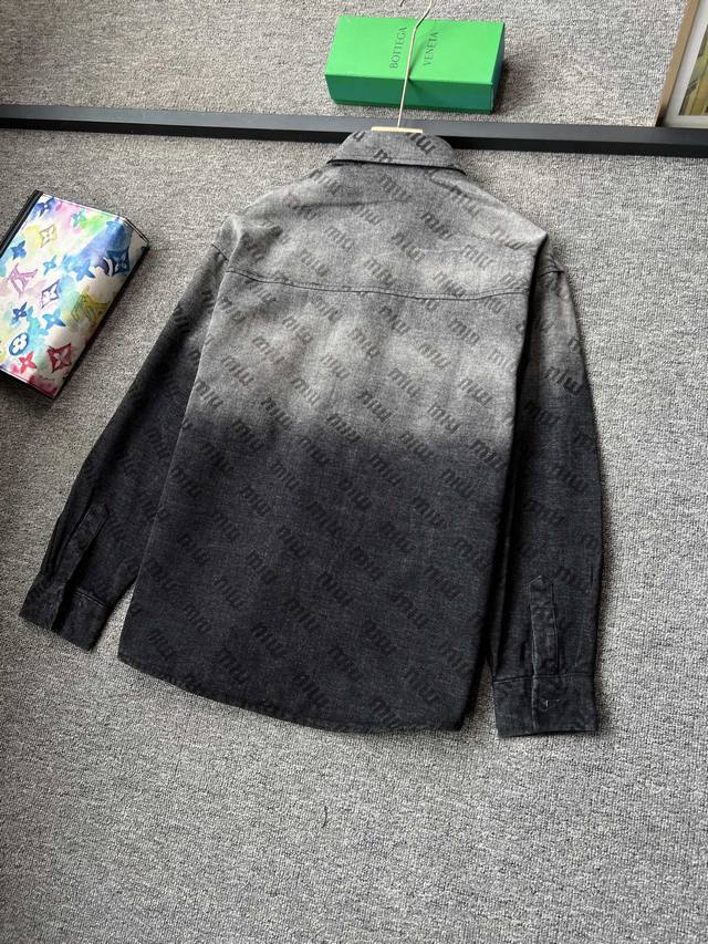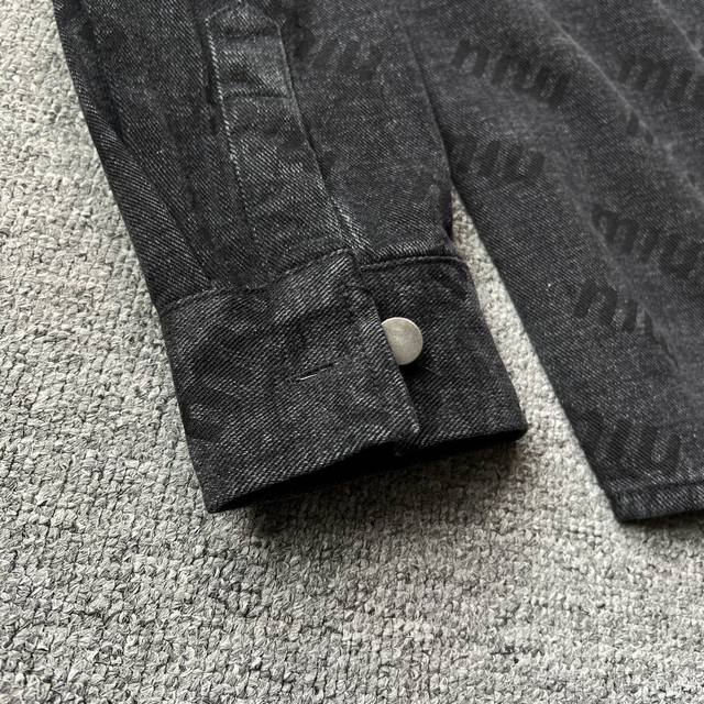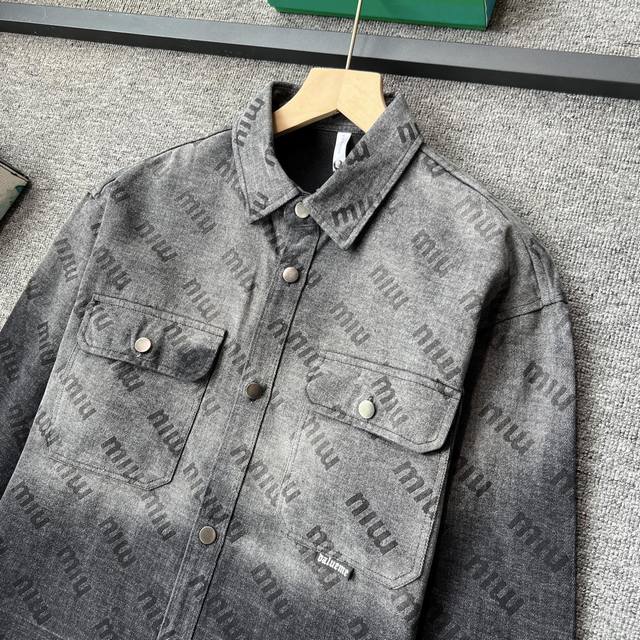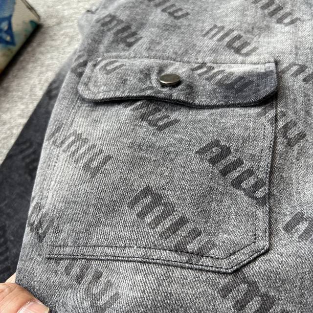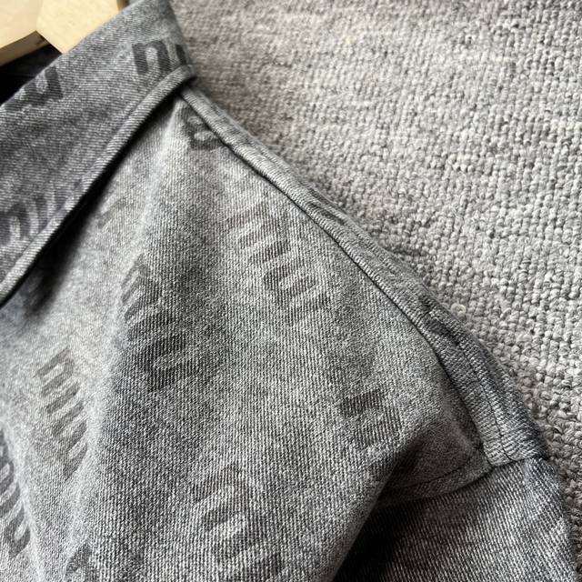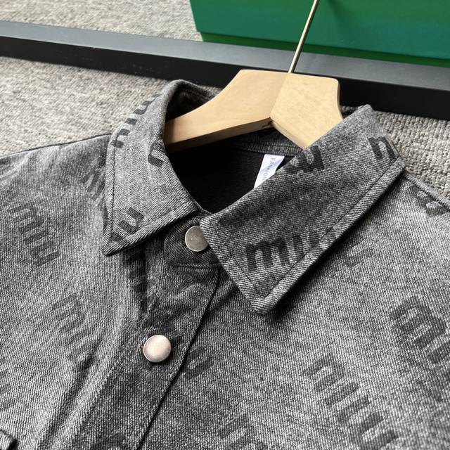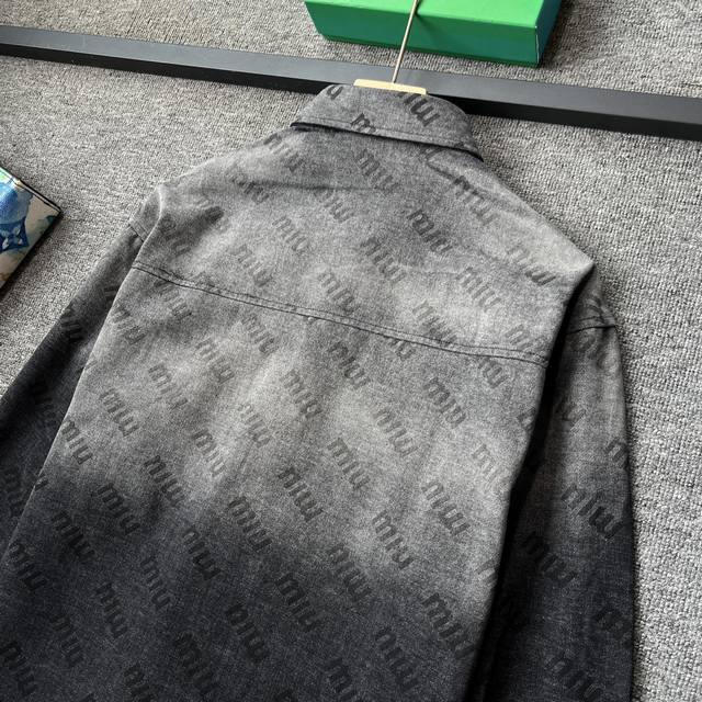 Miumiu 2025 Fall/Winter New Jacket! High-end custom denim jacket, top-notch quality, made with original jacquard fabric and custom washed material! Delicate to the touch and comfortable to wear! Brand logo jacquard, classic collared denim jacket! Sleek and clean lines! Simple and stylish, understated luxury, versatile and durable! A must-have item for trendsetters! Looks great with anything! Standard sizes: M-3XL