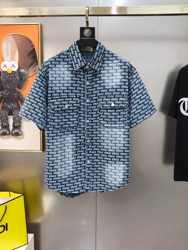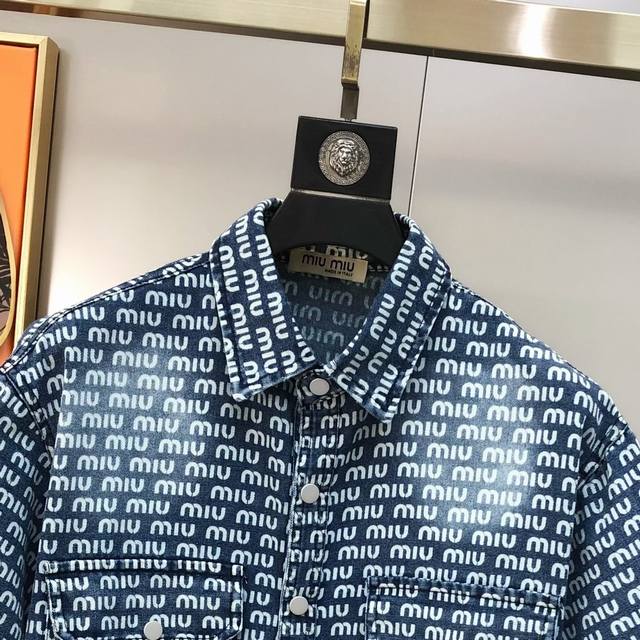 Miumiu 2025 Spring/Summer New Arrival Original Men's Short-Sleeve Denim Jacket, Official Website Synchronized Sale, Hot Selling Item, High-End Quality, Fashionable and Versatile, Panoramic Direct Injection Printed Letter Logo Pattern Design. Made with imported denim and pure cotton fabric, soft and delicate to the touch, comfortable to wear. Customer-supplied imported accessories, OEM factory P, exquisite workmanship, smooth lines, exquisite craftsmanship, superb fit, looks great with any outfit, highly recommended! Retail sizes: M-3XL. Largest size fits approximately 190 lbs. Please provide your height and weight when ordering. Ships the next day.