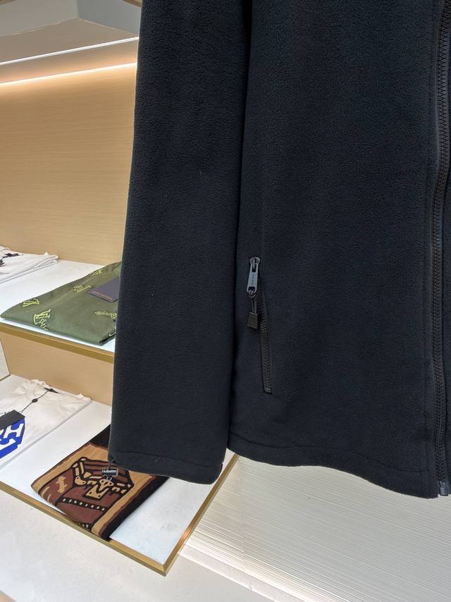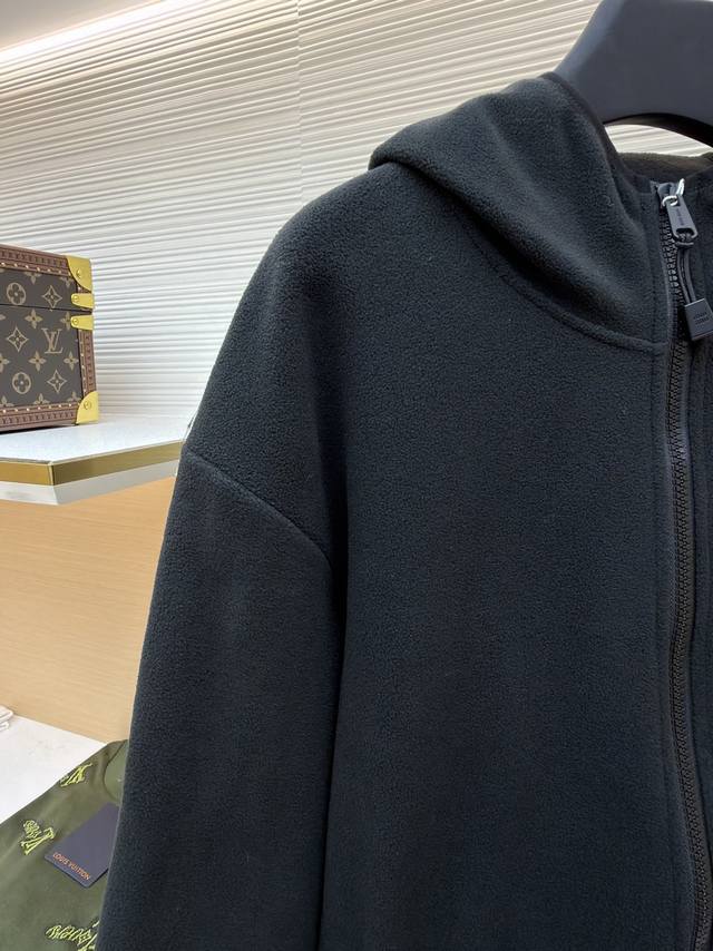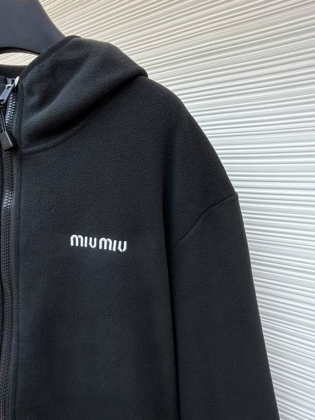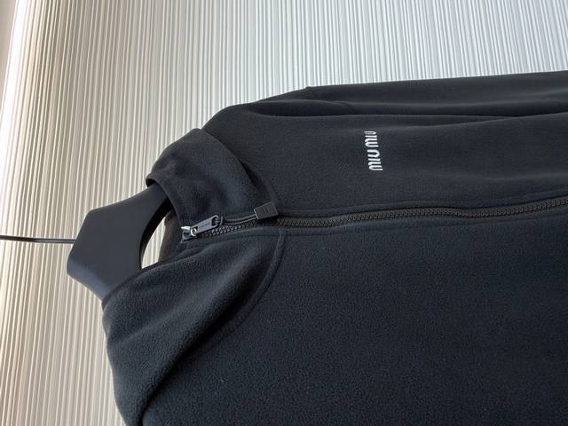 Miumiu Fleece Embroidered Jacket Original: Purchased from 14859 Item No.: 1680859-A95 Fabric: Fleece Craftsmanship: Embroidery Fit: Fitted Weight: Approx. 585g Sizes: 46-48-50-52 Description: Polyester filament is knitted on a circular knitting machine, with warp and weft yarns interlocking to form a double-sided knit structure. Both the front and back are flat loops. The fleece fabric is then processed through dyeing, raising, combing, shearing, and fleecing. The fleece surface is soft, and the fiber properties make it almost non-absorbent, allowing sweat to quickly evaporate to the outer layer of the fabric, maintaining good breathability. The fleece surface traps air, forming a non-flowing air layer around the body, effectively preventing heat loss and providing excellent warmth. The computer-controlled embroidery machine uses an extremely high stitch density to tightly fix the fabric and backing to the machine frame, ensuring even and precise tension. Dual-axis linear guides drive the embroidery frame, achieving a frame movement accuracy of 0.01 mm P, ensuring precise positioning. The overall stitching is straight and delicate, the fabric is comfortable and soft, and the color is consistent with no color difference, allowing for stylish matching and suitable for various occasions. Custom accessories are available, and all three labels are included. Unisex!