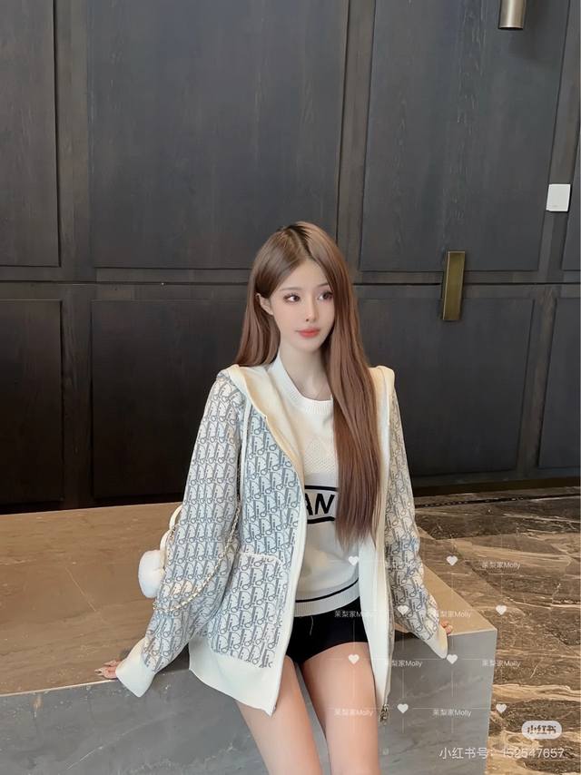 Dior Dior Hooded Cashmere Cardigan Reversible Zipper Knitted Jacket Dior Boutique Synchronized Jacket Thickened and Weighted 1.4 jin Upgraded High-Gram Fabric The fabric is made of cashmere fabric containing 50% wool and pure cotton. The lining is consistent with the original. The edging features a jacquard design with a solid color logo on one side and a classic monogram on the other. Reversible, allowing you to change styles anytime, anywhere. Custom-made imported velvet and imported machine-knitted materials. High-quality materials and a premium feel. Comfortable and skin-friendly. Large factory production line. Perfect details and texture. Main tag, hang tag, washed packaging, complete accessories. Size: Maximum fit 180cm. This versatile reversible cardigan is made from a cashmere blend and features a front zip closure. One side is royal blue, while the other is adorned with classic Oblique jacquard. The back features a striped pattern with the Christian Dior logo. It has a hood and is a classic, stylish, and versatile piece! Color: As pictured. Sizes: S (Length 70cm, Chest 105cm, Shoulder 45cm, Sleeve 56cm), M (Length 72cm, Chest 110cm, Shoulder 47cm, Sleeve 58cm), L (Length 74cm, Chest 115cm, Shoulder 49cm, Sleeve 60cm), XL (Length 76cm, Chest 120cm, Shoulder 51cm, Sleeve 62cm).