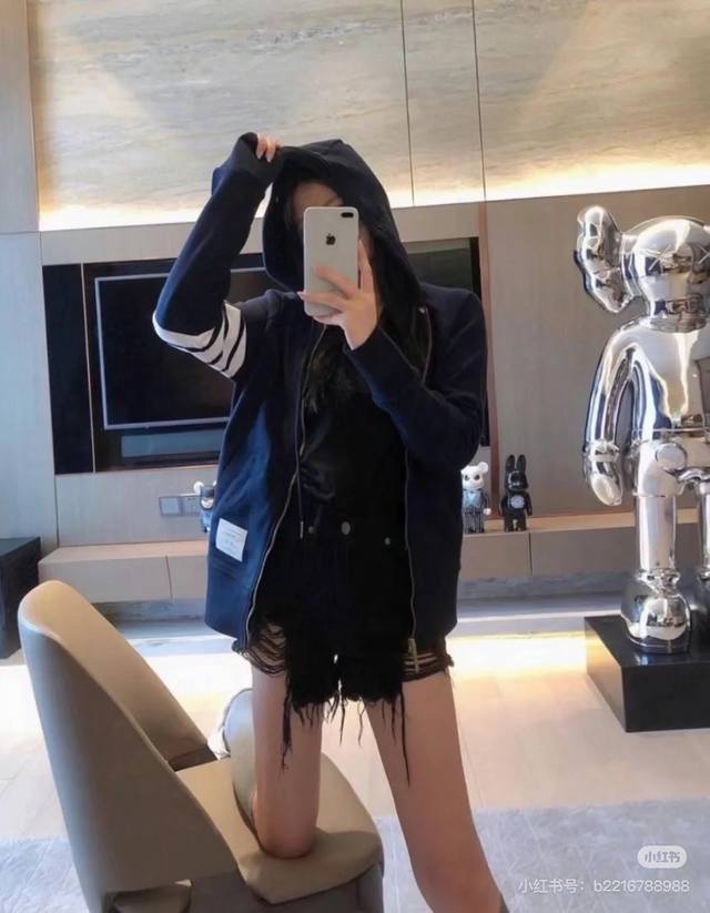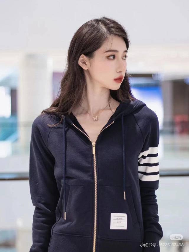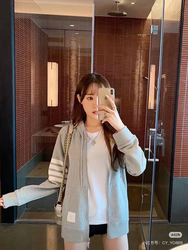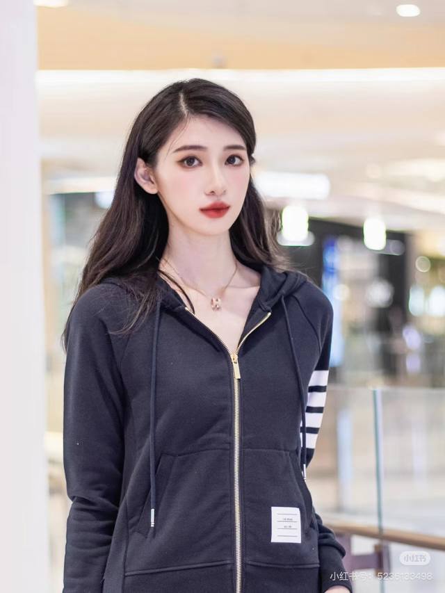 The collar features a separate horizontal knitting pattern, showcasing excellent craftsmanship at the seams. The side buttons at the hem are imported shell buttons, priced at over 10 times that of ordinary imitation shell buttons. The fabric is professionally custom-woven, with a 32S surface for a delicate touch and an 8S lining for a crisp and stylish look. Weighing a hefty 380g, minimum order quantity is 500kg, equivalent to 1000 pieces. The new version from the boutique features double stitching on the shoulders, a 0.4cm wider ribbed collar, and double-layered ribbed side panels for a more premium feel! The workmanship perfectly replicates the latest boutique version.