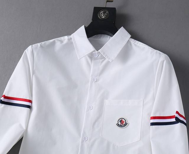 Moncler High-End Casual Series! 2025 Spring New Arrival - Casual Long-Sleeve Shirt! Featuring the brand's latest logo design, seamless tailoring, and imported 80-count high-quality cotton yarn. Smooth, comfortable, and elastic to the touch, with excellent pilling resistance. Extremely stylish, timeless, and sophisticated. Looks incredibly handsome and comfortable on, a versatile and stylish piece! A must-have for successful men! Sizes: M-3XL. Please provide your height and weight (