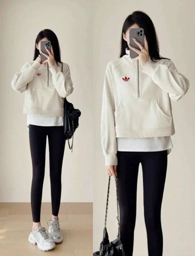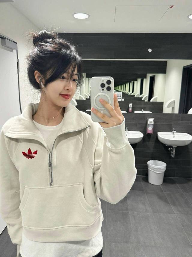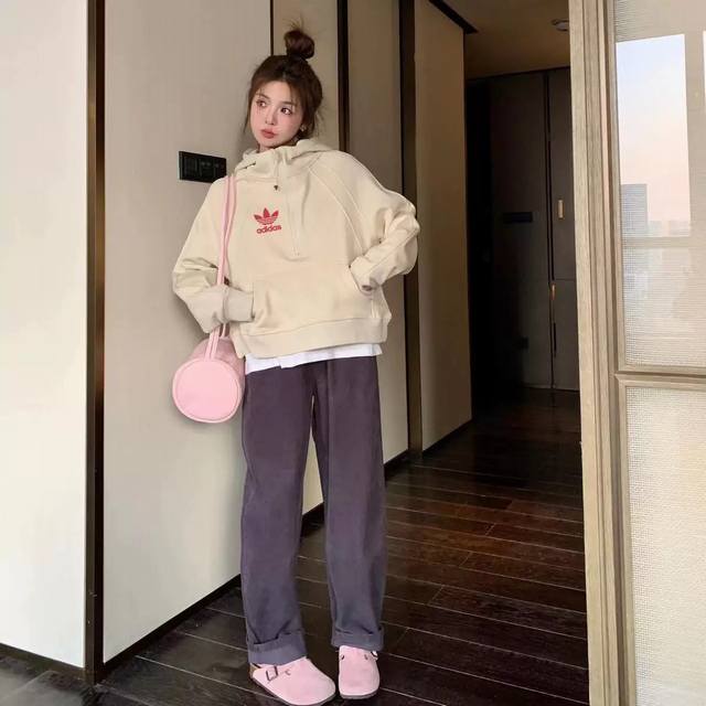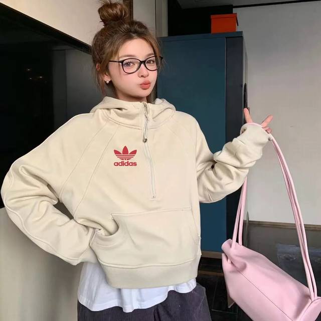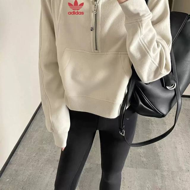 New Arrival! Adidas Originals Half-Zip Pullover Sweatshirt/Jacket. This new half-zip sweatshirt is a trendy, casual, and versatile style suitable for both men and women, perfect for couples. The embroidered trefoil logo on the chest is super cool! Featuring the classic trefoil logo, this comfortable and soft high-end cotton terry cloth sweatshirt is a premium product, unlike anything on the market. A street style bestseller, this factory-grade quality sweatshirt comes with complete packaging. Perfect for both men and women, it's incredibly stylish and will turn heads wherever you go. What are you waiting for? Super comfortable for autumn, with a great fit and design, loved by many online celebrities. A must-have for camouflage enthusiasts, this cool and stylish sweatshirt is perfect for autumn. Brand: Adidas Originals; Style Number: Ccy2487; Size: Xs-M; Color: Apricot; Fabric: Cotton Terry Cloth; Embroidered Label.