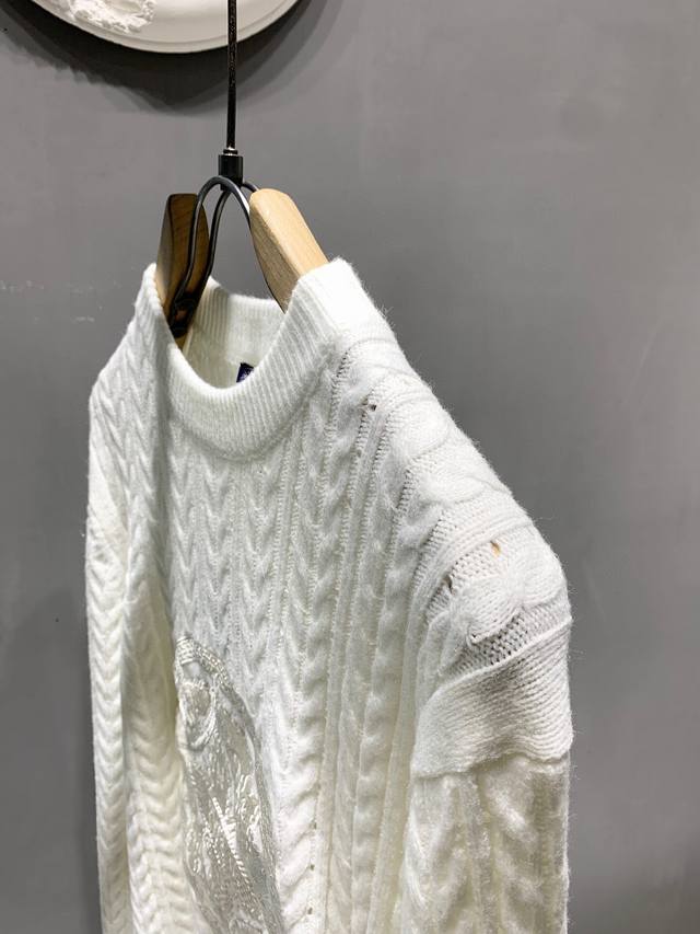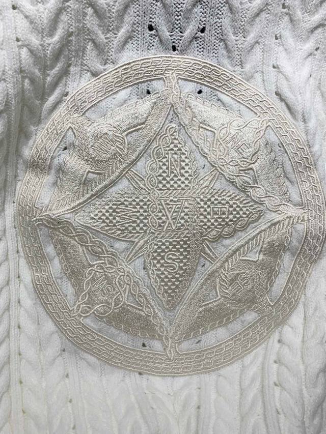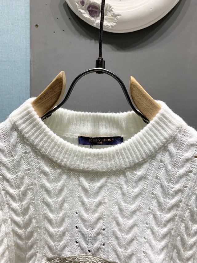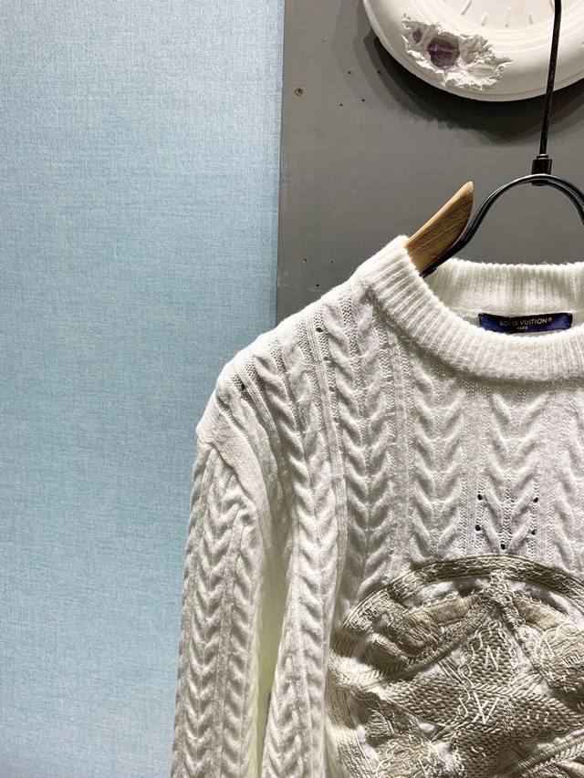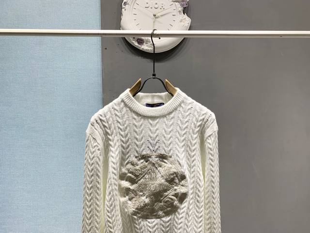 New Arrival: Top-Quality Louis Vuitton 2025 Autumn/Winter New Arrival! Cable Knit Logo Crew Neck Sweater, Pullover Sweater, Knitwear, Unisex! This crew neck sweater is crafted from a wool blend yarn, its lightweight and breathable silhouette interpreting the series' nautical theme. The front features a 1V Compass embroidered appliqu