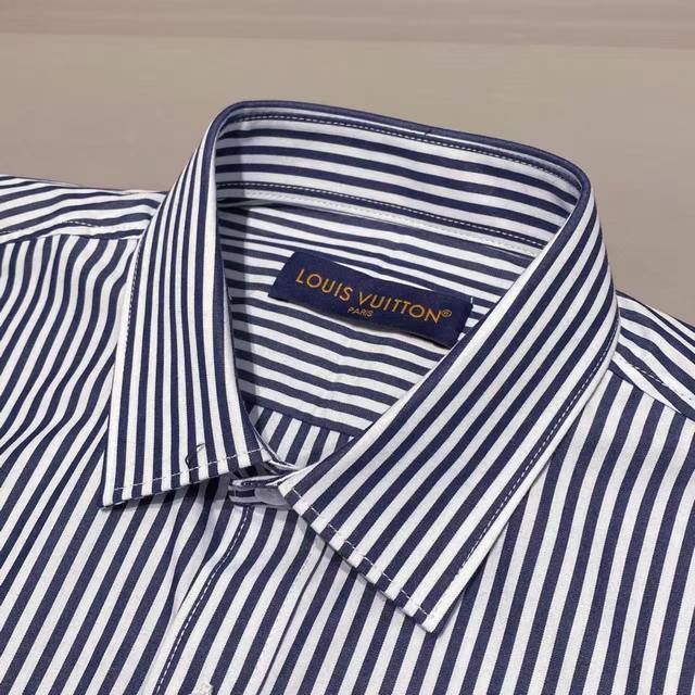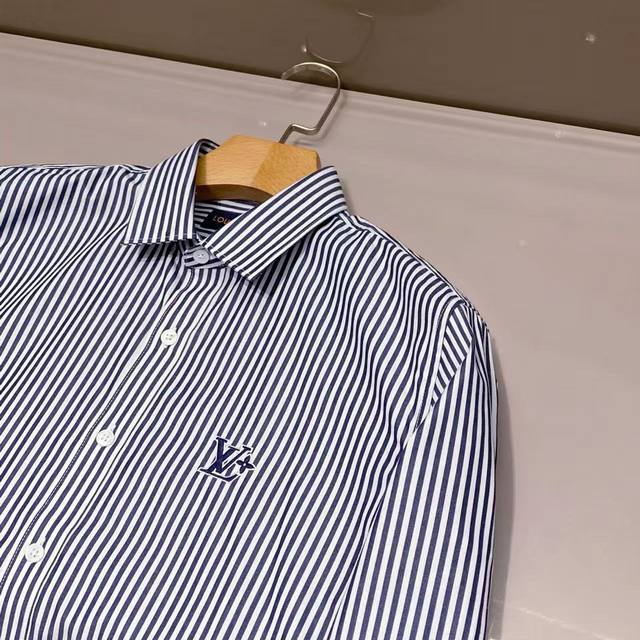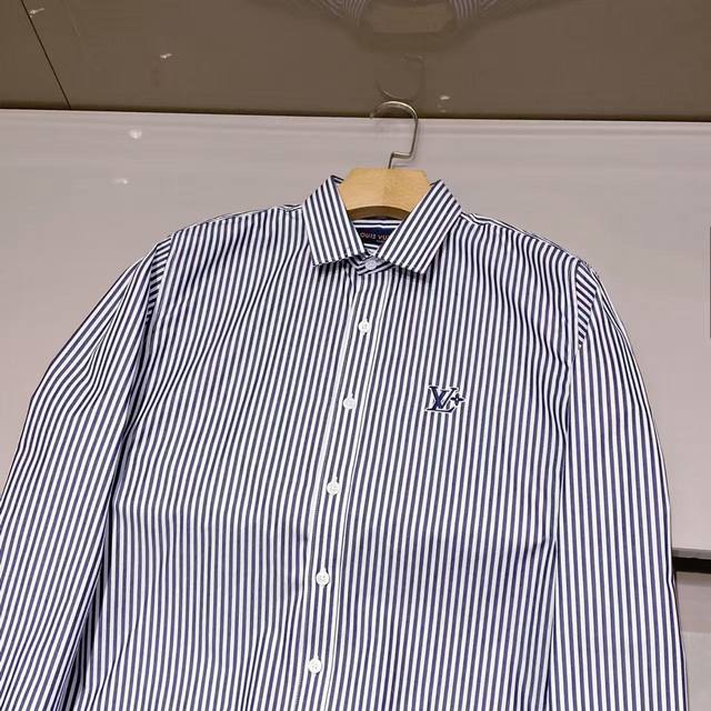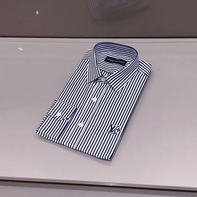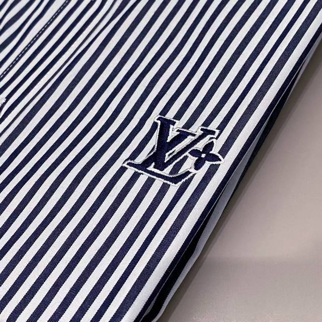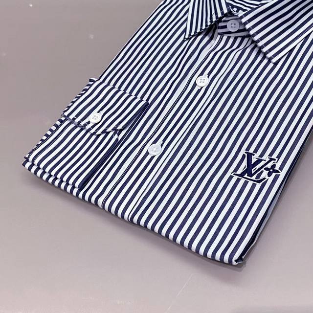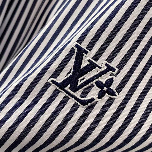 New Louis Vuitton Men's Casual Embroidered Striped Fashion Long-Sleeve Shirt, 2025 Autumn/Winter New Arrival, a continuation of last season's best-selling style, sourced from Hong Kong trading companies, a limited-edition celebrity-endorsed item, exclusively sold! The overall design follows the elements and tone of the Louis Vuitton family. Based on classic Louis Vuitton embroidery, it is paired with fashionable dark blue stripes, creating a wonderful and unique visual effect. It perfectly interprets the brand's culture and image, showcasing a stunningly stylish appearance and individualistic personality, forming a unique symbol!
