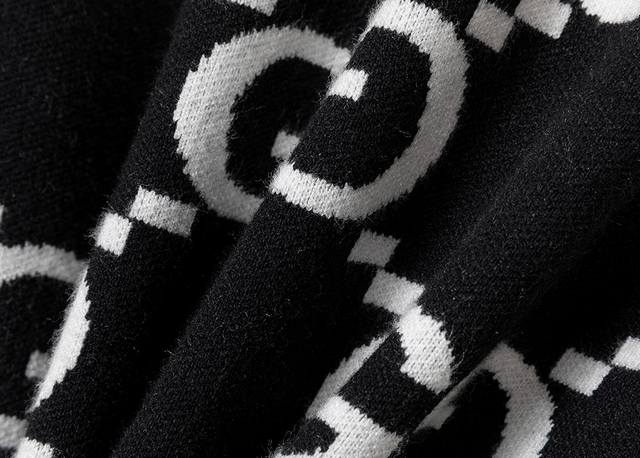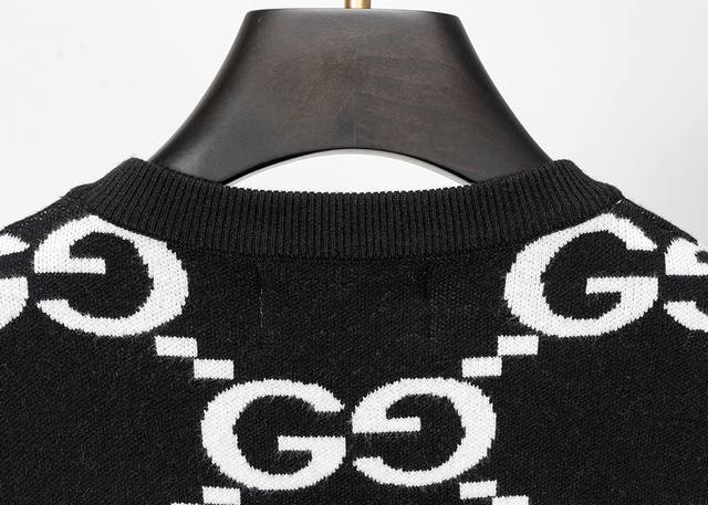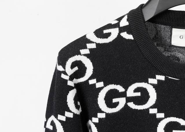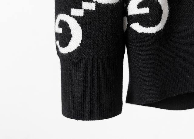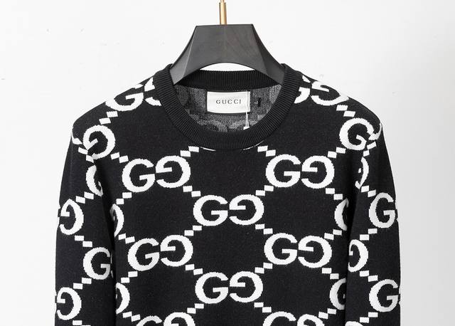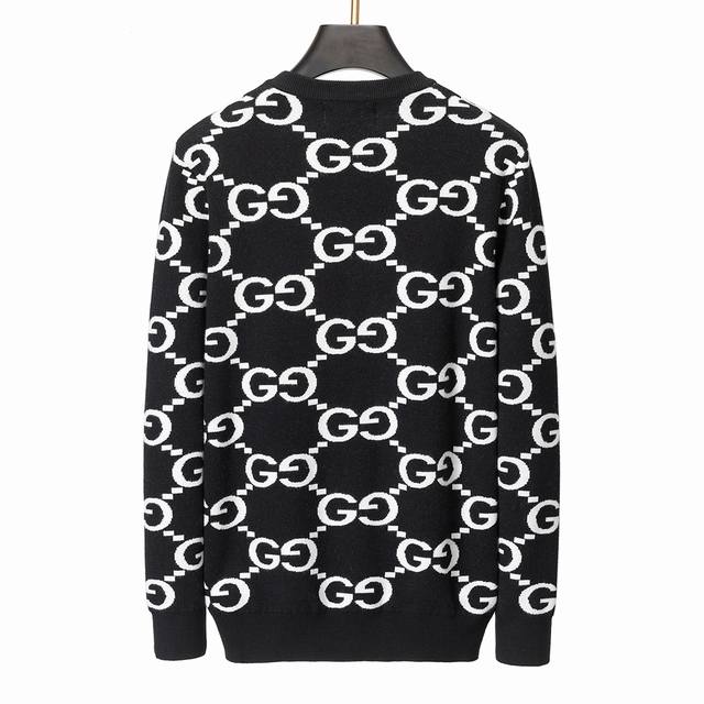 New winter round neck pullover sweater with classic double G jacquard pattern. Stylish and high-end design, thickened for comfort and warmth. Sizes M-3XL. Black (