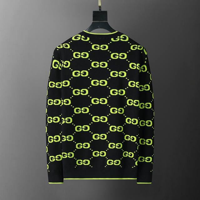 New winter round neck pullover sweater with classic double G letter jacquard, stylish and high-end design, thickened for comfort and warmth, sizes M-3XL, black (
