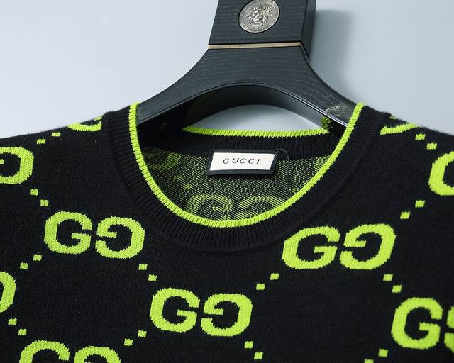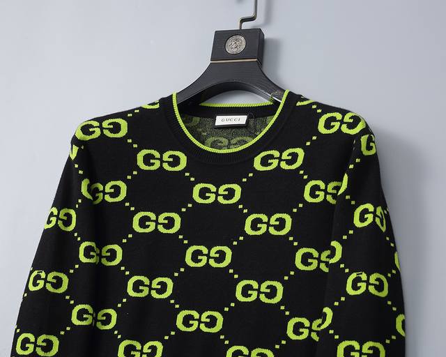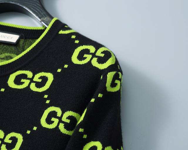 New winter round neck pullover sweater with classic double G letter jacquard, st