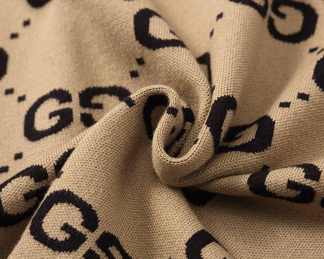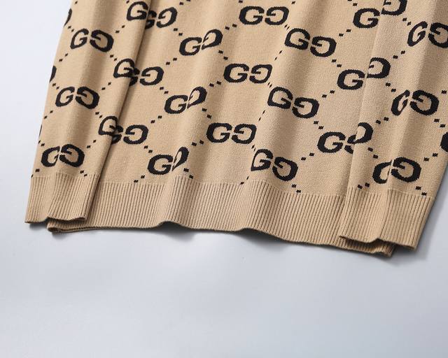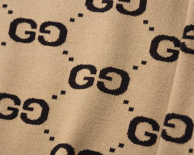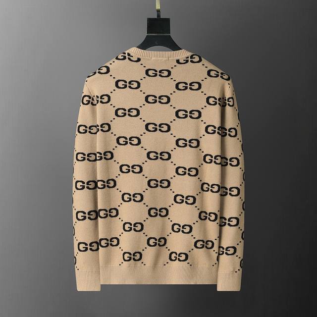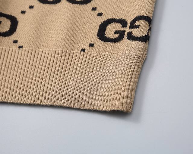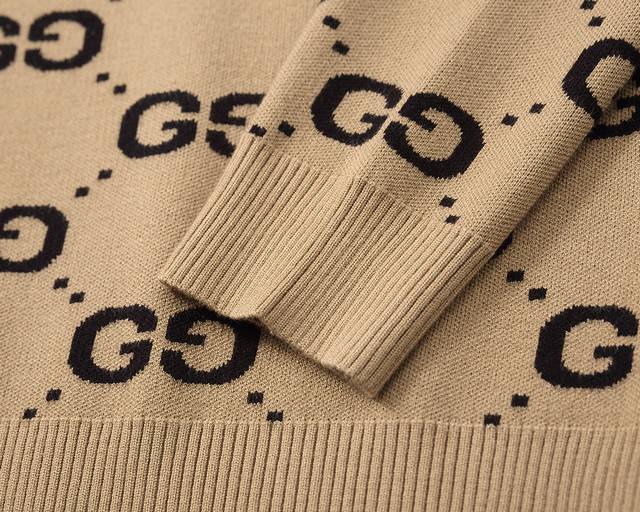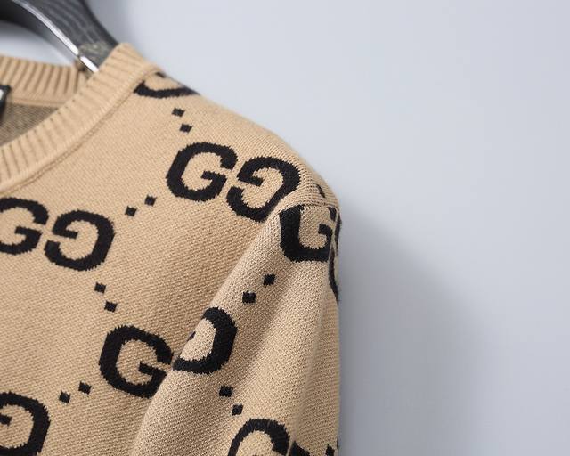 New winter round neck pullover sweater with classic double G letter jacquard. Stylish and high-end design, thickened for comfort and warmth. Sizes M-3XL. Khaki.