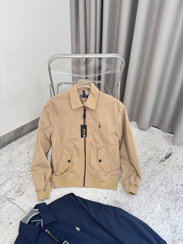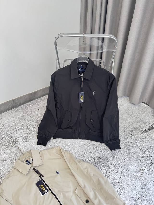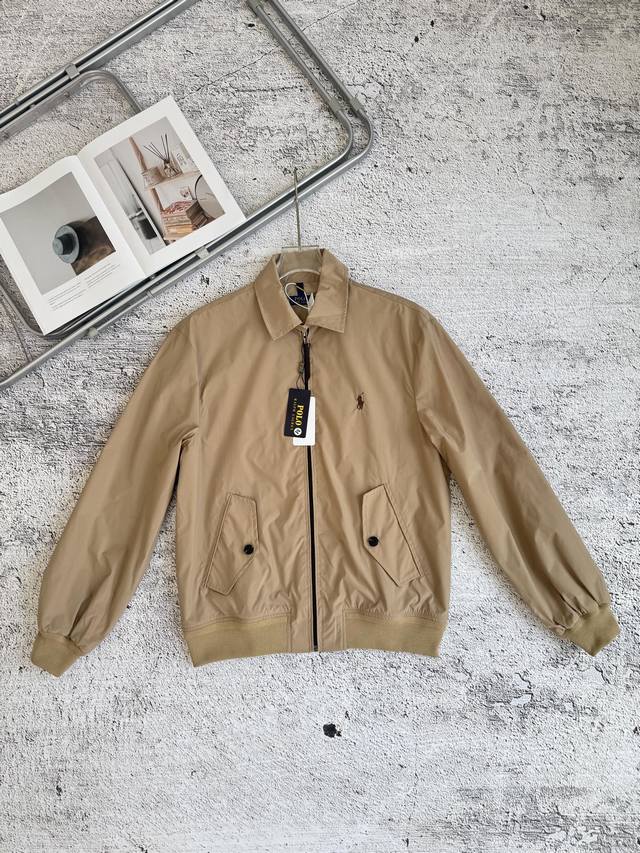 Official 1:1 replica, classic four colors available. Ralph Lauren jacket with embroidered pony design, old-money style, Harrington coat. Correct version, top-quality replica. The lining uses Scottish fabric, plus their classic khaki color - these three elements enhance the classic old-man style, making it a sure hit this year. The stiffness is just right, not too hard, which is this year's upgrade; in fact, I find it even more comfortable to wear. The embroidery on the chest uses a Japanese Tajima machine, ensuring exquisite and three-dimensional embroidery, which is what I meant by different from others on the market. Regarding the workmanship and fit, it's a loose fit, suitable for both men and women. It's a jacket that can be worn for a longer time, perfect for spring outings and autumn travel. Retro and timeless. Colors: Khaki, Navy Blue, Black, Apricot White. Sizes: S to XXL. Length, Chest, Shoulder Width, Sleeve Length, Cuff. S 64 114 50 63 17 M 66 118 51 64 18 L 68 122 52 65 19 XL 70 126 54 66 20 XXL 72 130 55 67 21