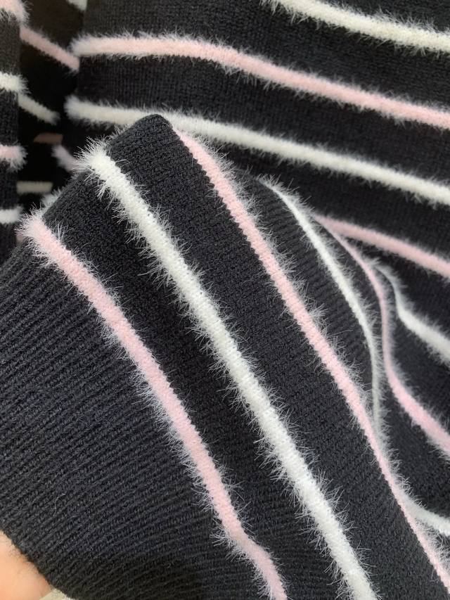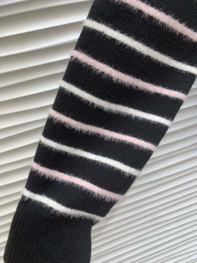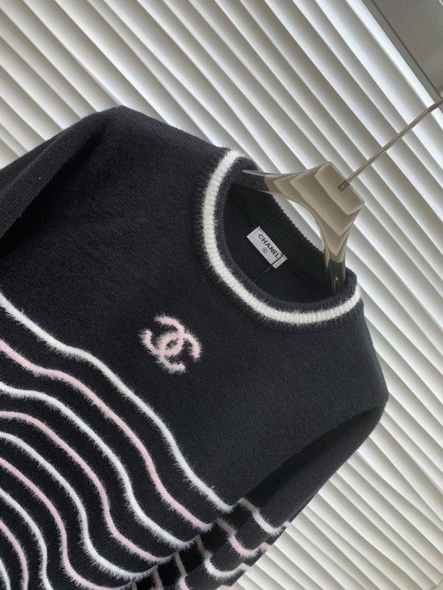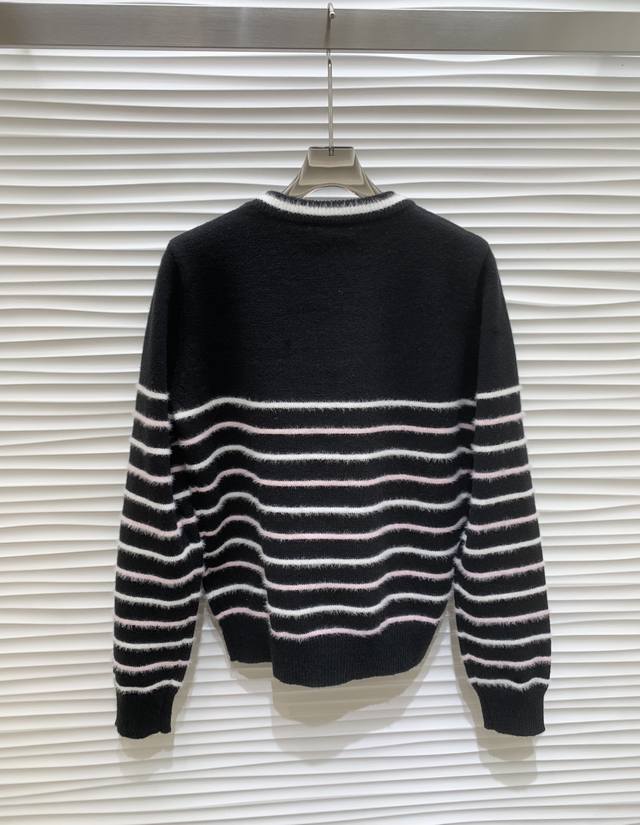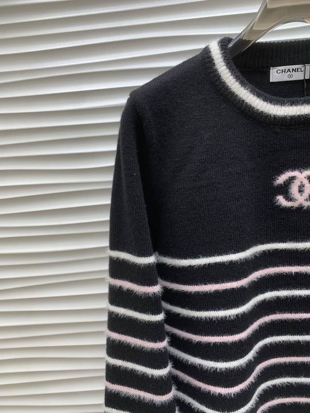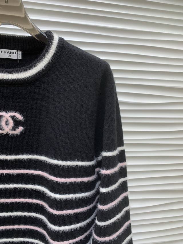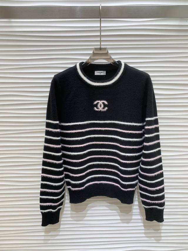 Original Cha......2025 Autumn/Winter New Style Striped Pullover Long-Sleeve Sweater, made with custom imported yarn, soft and comfortable, stylish and slimming round neck pullover sweater. The entire sweater is trimmed with elastic ribbed trim for a neat and refined look. The double C logo on the chest is adorned with alternating stripes, showcasing the brand's signature style. It exudes a gentle and artistic Korean vibe, perfect for layering or layering in autumn and winter. Original version, 2 colors, sizes S, M, L.