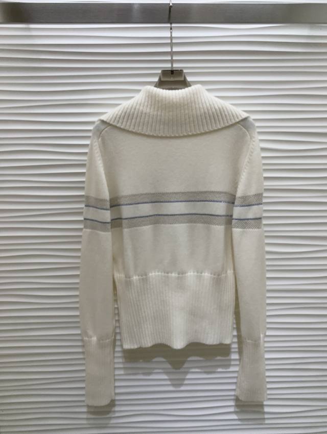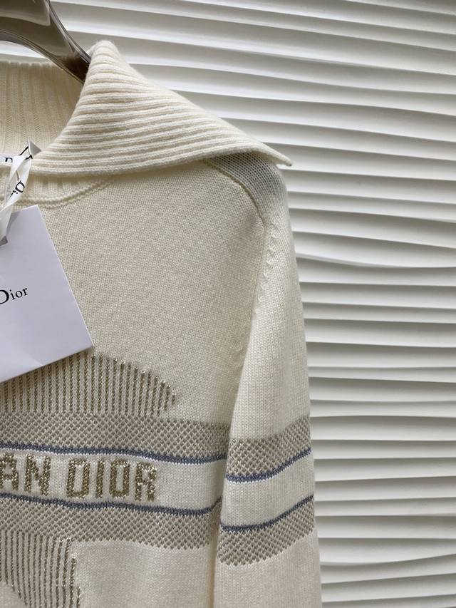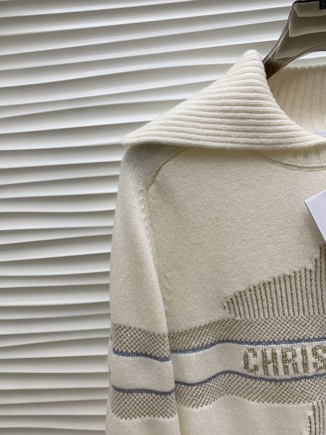 Original Dd......2025 Autumn/Winter New Collared Knit Pullover Sweater. Features a large collar, long sleeves, and a dense knit with ribbed details for enhanced warmth and wind protection. Wide ribbed cuffs echo the hem. The chest features a horizontal stripe adorned with crochet stars and lettering, showcasing the brand's style. A classic, structured fit, perfect for everyday wear in autumn and winter. Original version, 1 color, sizes S, M, L, D,