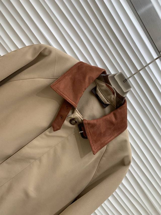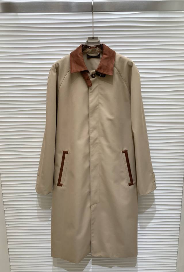 Original Lp 2025 Early Autumn New Fashionable Vintage Style High-End Patchwork Leather Collar Workwear Pocket Long Trench Coat, Contrasting Color Suede Lapel, Classic H-Line Slit Design, Stylish and Tall, Elegant and Casual High-End Feel! Superb Aura When Wearing. Perfect Workmanship and Quality in the Details, Yb Checkered Lining, Looks Stylish and Classy. Original Version, 1 Color, Sizes S, M, L.