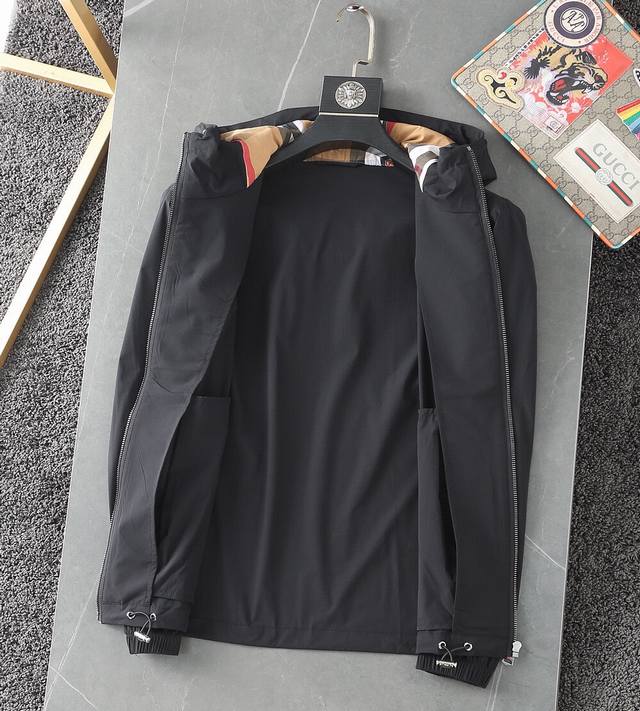Original quality Burberry 2025 Spring/Summer new arrival, Italian imported fabric fashionable hooded jacket. Synchronized with European boutiques, more casual and elegant to wear. Original boutique hardware, luxurious high-end custom accessories! Luxury brand logo. Latest boutique style, highest quality on the market, original accessories, ultimate luxury! Soft and comfortable. Looks incredibly stylish! Suitable for any occasion in autumn. Sizes: 48-56. (Chest measurement information follows)