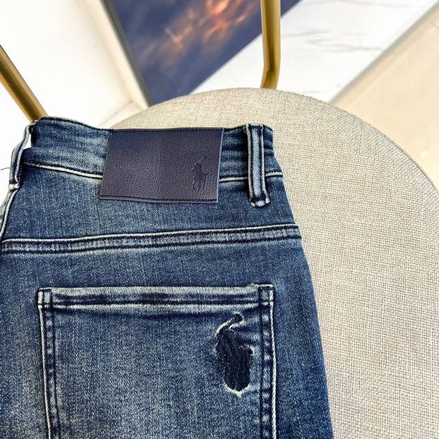 Polo Ralph Lauren Men's Jeans, 25Fw Early Autumn/Winter New Arrival. These casual jeans prioritize craftsmanship and fabric quality. All accessories and fabrics are custom-made in Italy, defying convention in terms of properties and specifications. The materials are luxurious and meticulously selected, featuring heavy-duty ready-to-wear twill cotton with a soft, delicate texture and slight elasticity, providing exceptional comfort. The details are impeccable, with all accessories custom-supplied. The leather patch has been revamped and is particularly striking, possessing a subtle retro feel that blends seamlessly with the denim. The cut is superb, offering a flattering and slimming fit. Suitable for both business and casual occasions, it's highly versatile and a rare find