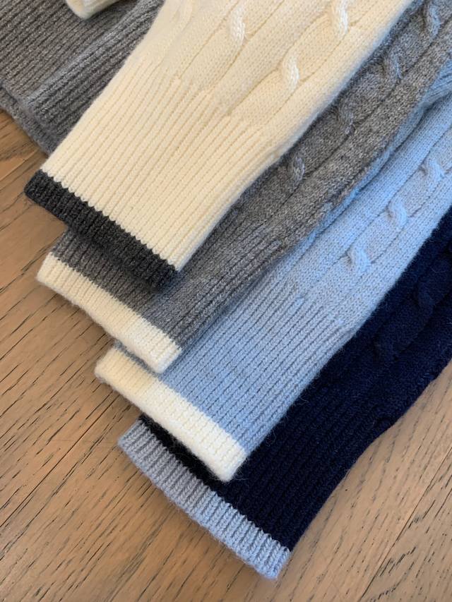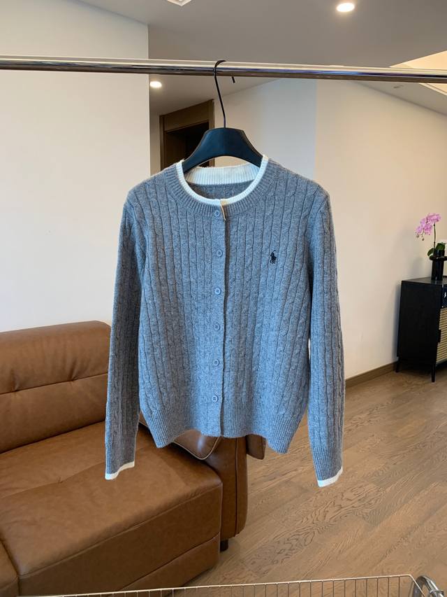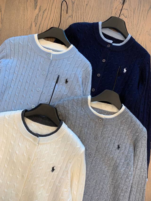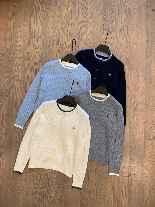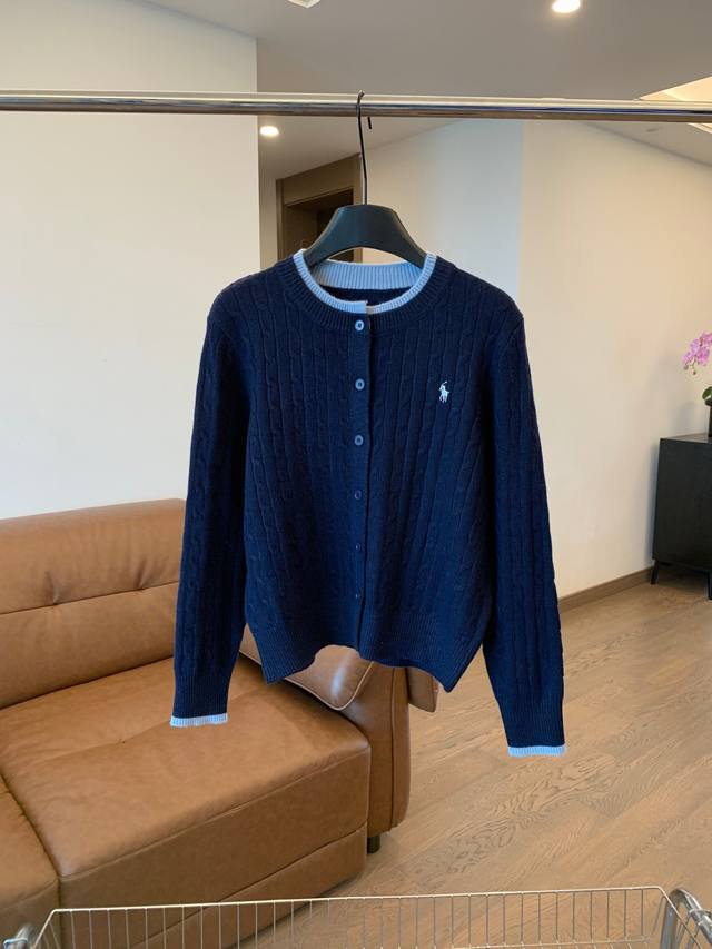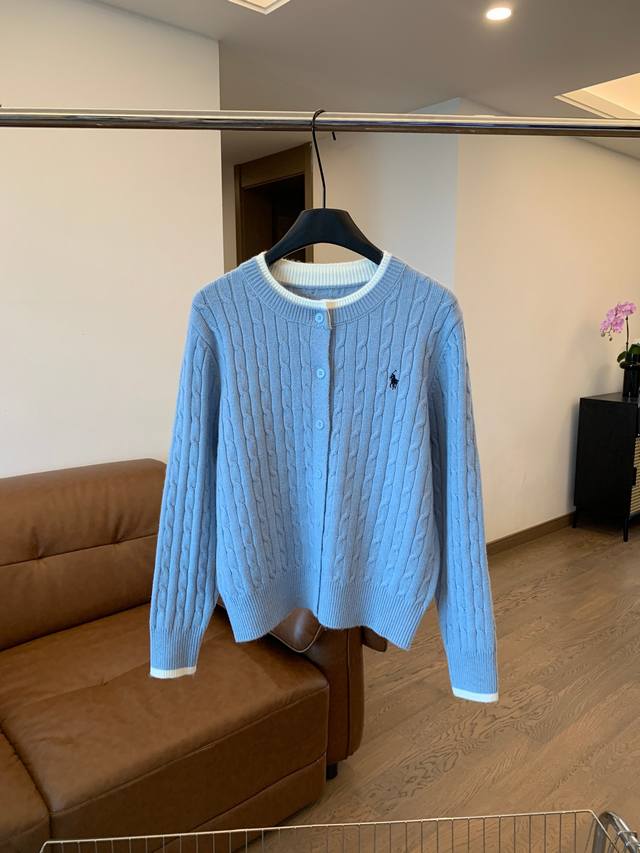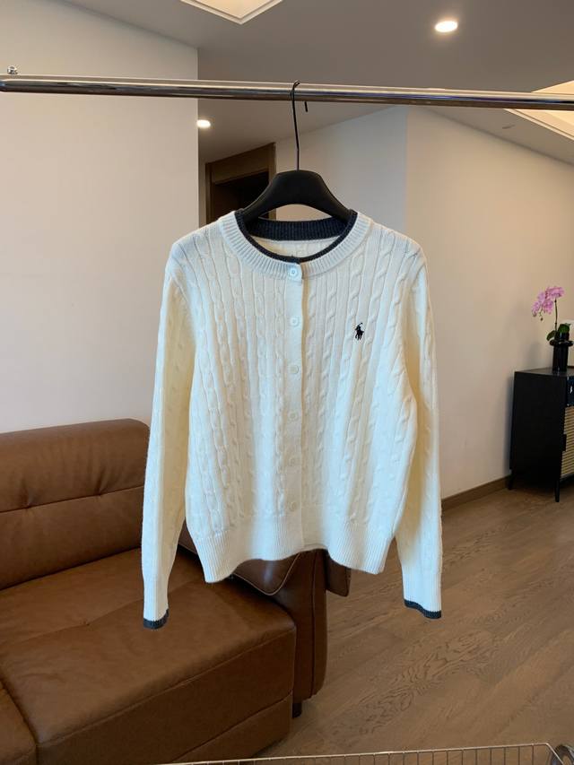 Pony Cable Knit Color-Blocked Cardigan, a must-have for autumn and winter! The color-blocked neckline adds a touch of innovation to the classic design, making it more dynamic in detail. Effortlessly stylish for autumn, exuding a gentle and casual feel! Colors: White, Navy, Gray, Light Blue Sizes: S, M, L Shoulder Width: 38, 40, 42 Sleeve Length: 56, 57, 58 Chest: 100, 102, 104 Length: 50, 52, 54