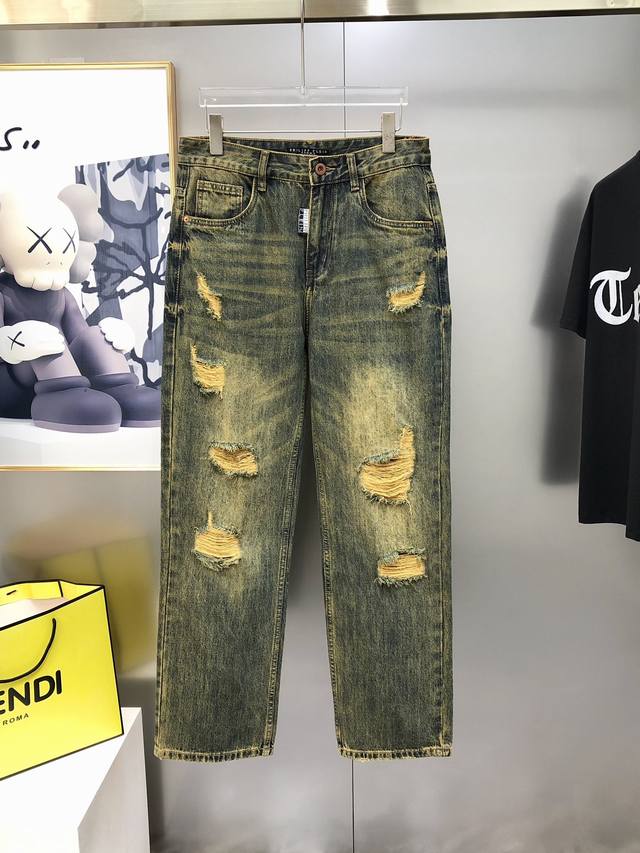 Pp Philippe Prine 2025 Early Autumn New Men's Loose Straight Leg Jeans Official Website Synchronized Hot Selling Item High-End Custom Original Order Extremely Goods Personalized Fashion Distressed Ripped Custom Imported Denim Washed Denim Pure Cotton Fabric Original Accessories Exquisite Workmanship Cool and Energetic Soft and Delicate Comfortable and Breathable Extremely High Matching Rate and Durability Superb Store Quality Super Handsome and Stylish Sizes: 28-38 Sizes not available 35, 37 Ships the next day