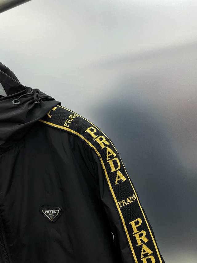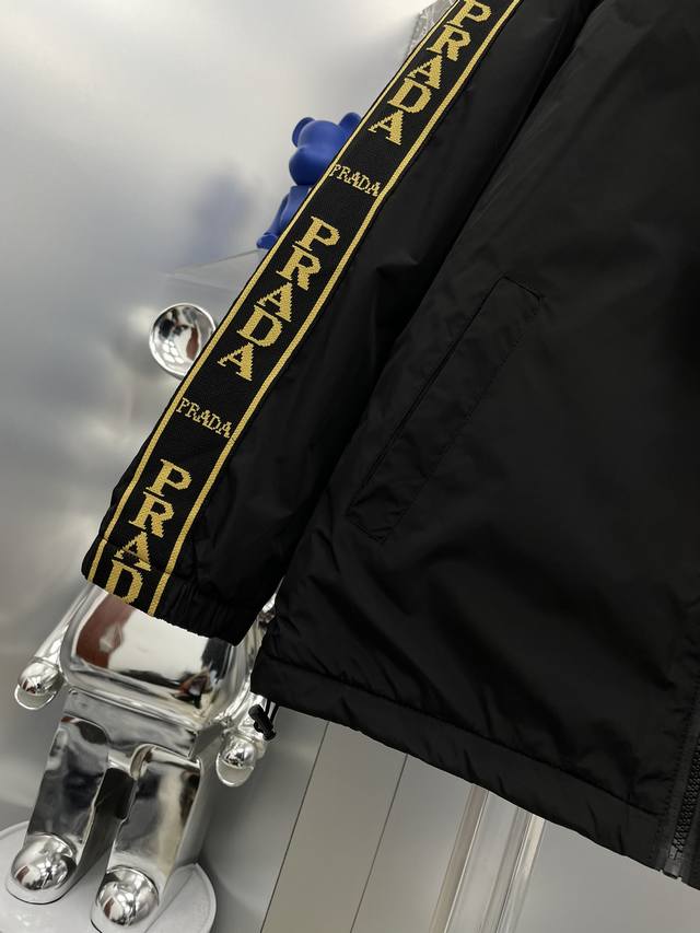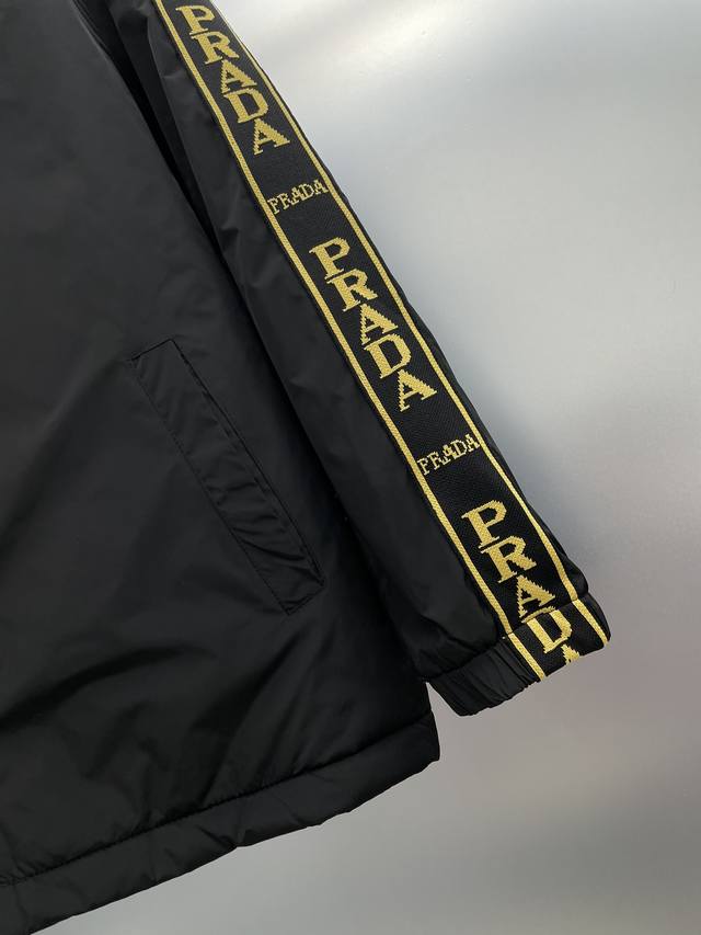 Pra* New Prada Logo Webbing Patchwork Down Jacket S