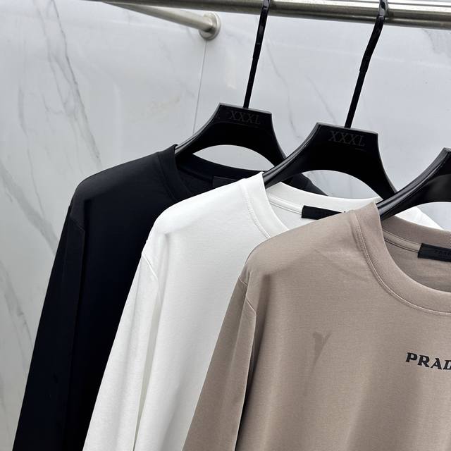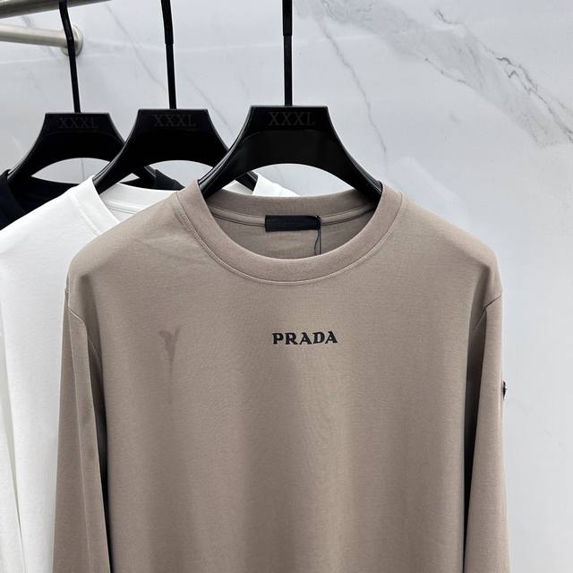 Prad 2025 Autumn/Winter New Arrival Cotton Long-Sleeve T-Shirt. The seasonal colors convey an elegant charm, making it a perfect choice for everyday wear. The sleeve logo subtly identifies the brand; the 3D lettering, fine workmanship, stylish and sophisticated design, and comfortable against the skin are all present. Sizes: M-3XL