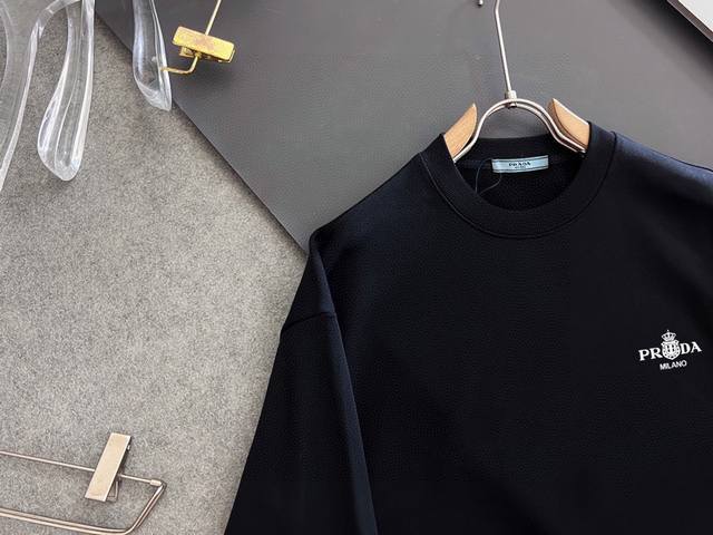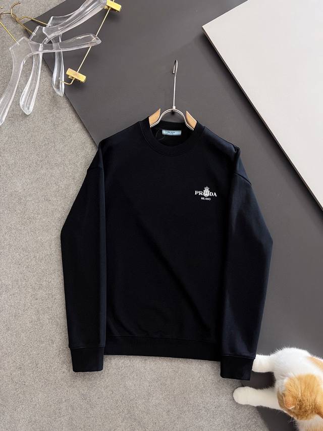 Prad imported private goods, high-end printed crewneck sweatshirt, boutique style, fashionable yet luxurious, quality beyond doubt, superb fit, same style as the official luxury website, sizes M-3XL