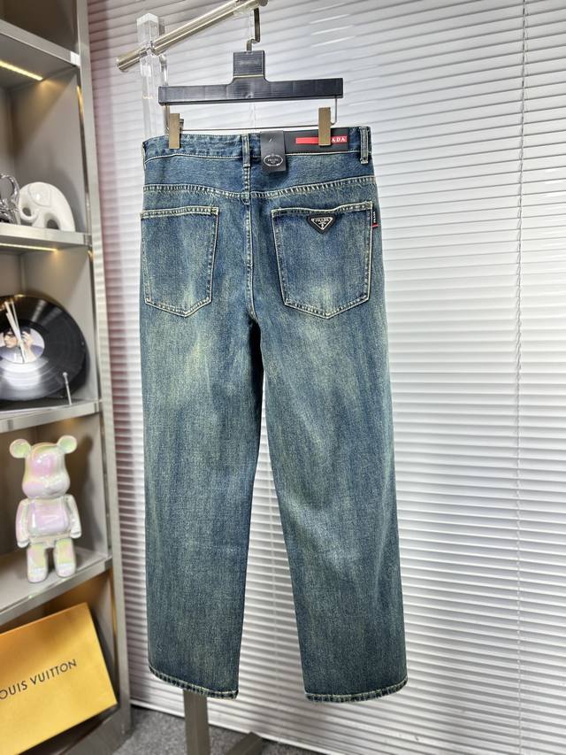 Prad* Prad Ss25 Autumn/Winter New Men's Jeans - Excellent elasticity fabric. Exclusively available, same style as the official website. Fashionable and elegant, made with original color yeast wash process, selected imported heavyweight denim fabric, with boutique hardware decorations, genuine leather tag, and exquisite stitching. A must-have. Sizes M: 29-38 (No 37