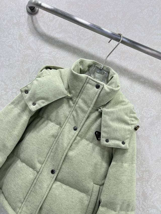 Prad*25 New Down Jacket, 90% White Duck Down, Candy Colors are So Vibrant and Playful! Detachable Hood Design, Triangle Logo Decoration on the Chest, Front, and Back, Custom Hardware Creates Visual Layers, Creating a Sleek and Stylish Look with a Retro Chic Touch. Attention to detail, warm, structured, and comfortable. Classic and universally flattering cut, incredibly slimming! A must-have for sophisticated women! 4 Colors, 3 Sizes: S, M, L, D
