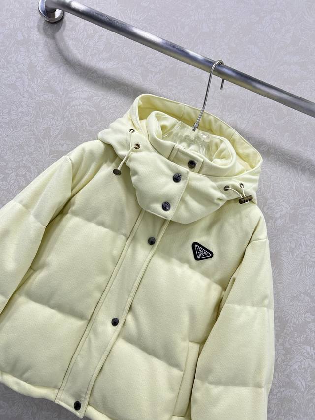 Prad*25 New Down Jacket, 90% White Duck Down, Candy Colors are So Vibrant and Playful! Detachable Hood Design, Triangle Logo Decoration on the Chest, Front, and Back, Custom Hardware Creates Visual Layers, Creating a Sleek and Stylish Look with a Retro Chic Touch. Attention to Detail, Warm and Stylish, Comfortable and High-Quality, Classic and Flattering Fit, Super Slimming! A Must-Have for Fashionistas! 4 Colors, 3 Sizes: S, M, L, D
