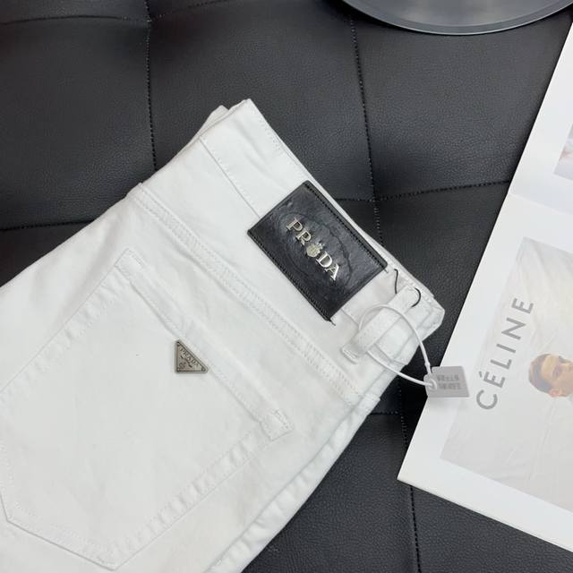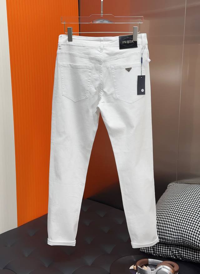 Prada 2025 Spring/Summer Fashion New Arrival High-End Luxury Custom-Made Straight Leg Jeans. Made with custom-supplied washed stretch fabric, a fine imitation cotton yarn blend for comfort and softness. Classic small hardware accessories. Exceptional quality and extremely luxurious. Stylish fit, flattering on all body types. Sizes: 28-38 (excluding 35 and 37).