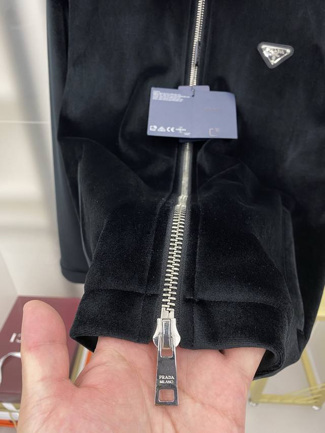 Prada 25Ss Velvet Denim Yokosuka Jacket (Authentic, purchased for 35,500, developed from scratch). Features include: 7*7 twill flocked fabric, rayon lining, custom 1:1 chain, custom 1:1 buttons, custom 1:1 beads, custom 1:1 logo. Sizes 48-50-52-54-56. Exclusively supplied. Eee 7.
