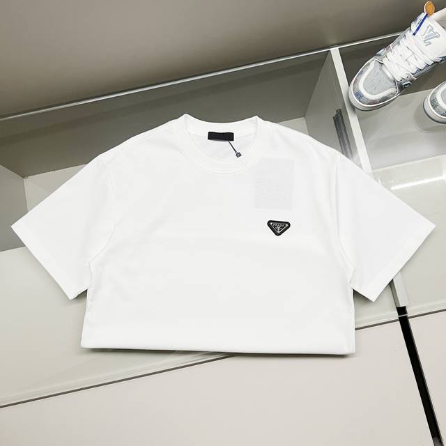 Prada 300g Crew Neck Pure Cotton Short Sleeve T-Shirt