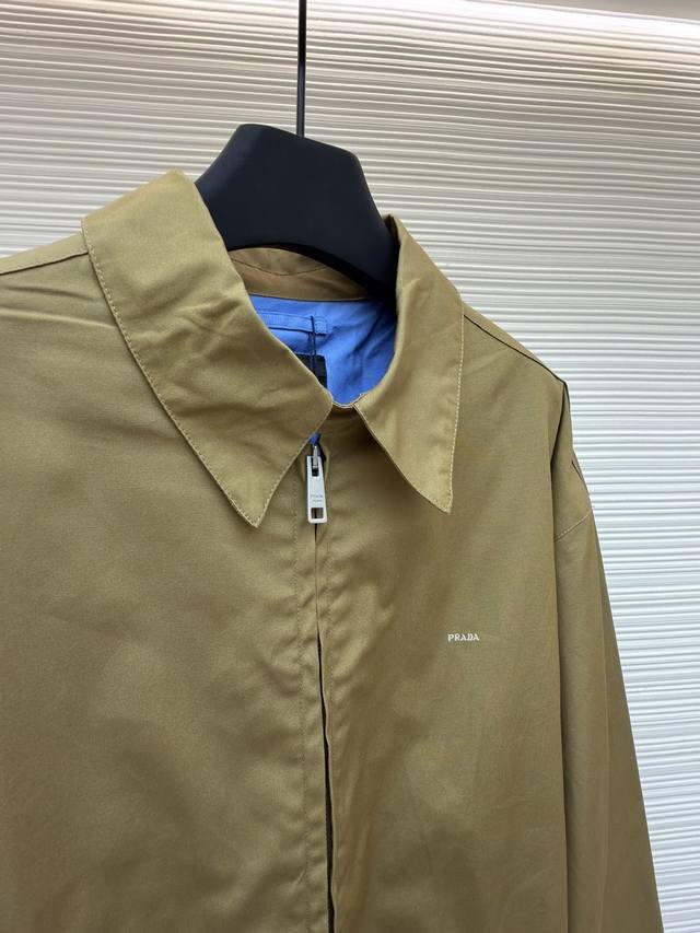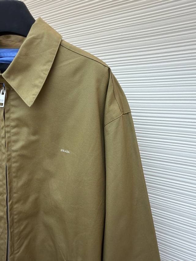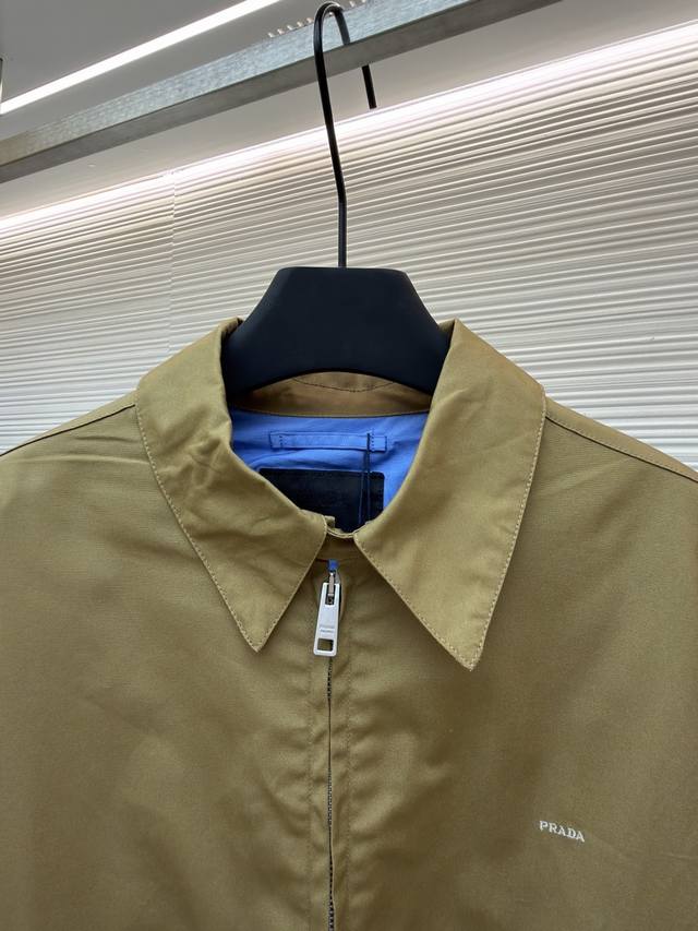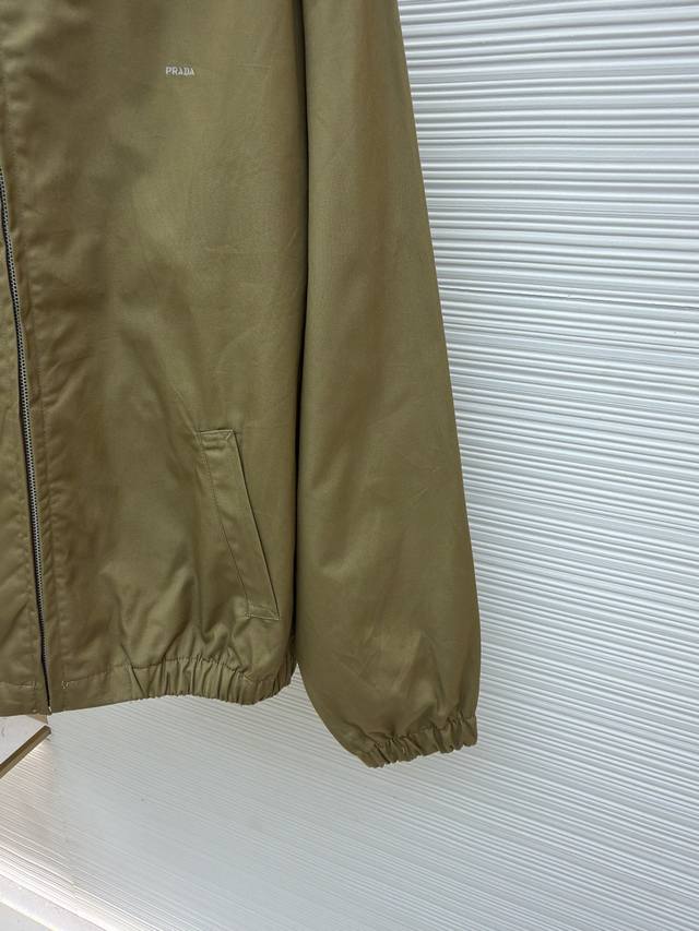 Prada Embroidered Logo Zipper Executive Jacket Original: Purchased in 19300 Item No.: 1680845-B60 Fabric: Xinjiang lambskin cotton Craftsmanship: Embroidery Fit: Slim fit Weight: Approx. 740g Sizes: 46-48-50-52 Description: Made with 32-count cotton yarn, this jacket uses Xinjiang white cotton, dyed 1:1 after the original design was woven. The same fabric was used for both weaving and dyeing. The fabric took two months to produce. The chest embroidery was done with an imported embroidery machine, creating a three-dimensional visual effect with clearly defined lettering. The lining features eyelets, bar stitching, and pockets, among other details, totaling nearly 30 workmanship points. The zipper is electroplated with No. 5 bright white, and the brand logo is laser-engraved. The buttons are made of natural resin. This cotton item features a casual style with a soft and lightweight silhouette. The stitching is straight and delicate, the fabric is comfortable and soft, and the color is consistent with other items, allowing for easy pairing with similar styles to create a fashionable look suitable for various occasions. Custom accessories are included, and all three labels are complete. Unisex!
