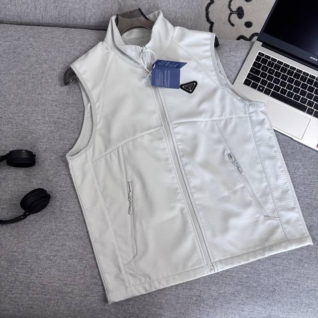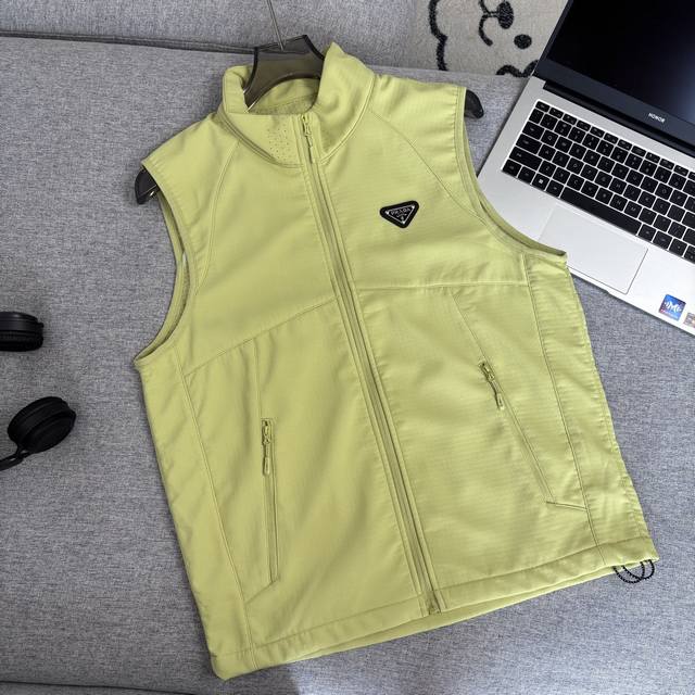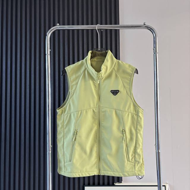 Prada Mountain Style Functional Lightweight Warm Cardigan Vest. 3D three-dimensional tailoring for a crisp and stylish look; durable and wear-resistant checkered texture fabric; lightweight and warm fleece lining; soft and fluffy fabric surface; suitable for multiple seasons; excellent fit, avoids bulkiness; superb fabric quality; a must-have for the season. Actual product photos show the fabric quality at a glance; exquisite workmanship; authentic stitching; authentic tags; washing label; complete packaging; meticulous attention to detail in both bulk and small items. Colors: Light Green, Light Gray, Black. Sizes: M-4XL. M: Shoulder Width 41.5cm, Chest 108cm, Length 65cm. L: Shoulder Width 43cm, Chest 112cm, Length 67cm. XL: Shoulder Width 44.5cm, Chest 116cm, Length 69cm. 2XL: Shoulder Width 46cm, Chest 120cm, Length 71cm. 3XL: Shoulder Width 47.5cm. Bust 124cm, Length 73cm, Size