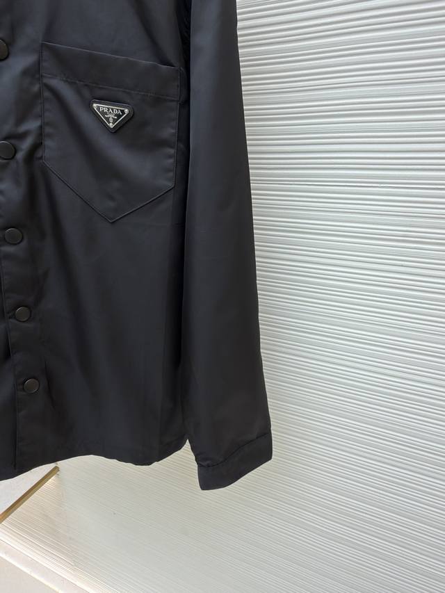 Prada Triangle Logo Nylon Shirt Original: Purchased for 13100 Item No.: 1680855-A95 Fabric: Nylon Craftsmanship: Positioning and Cutting Fit: Fitted Weight: Approx. 280g Sizes: SML-XL Description: Made with custom recycled nylon, the fabric feels like futuristic technology