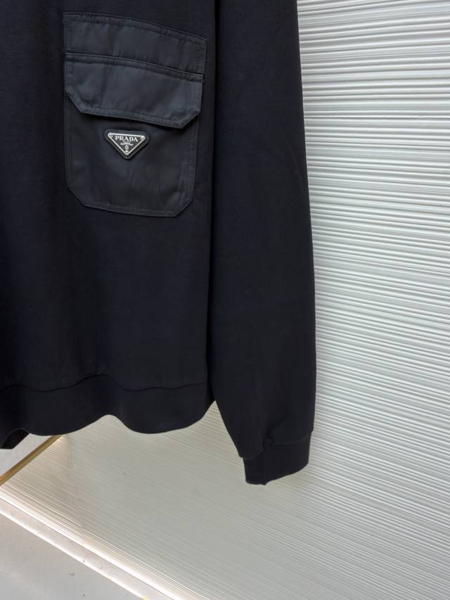 Prada Triangle Logo Nylon Sweatshirt Original: Purchased for 14100 Item No.: 1680849-A45 Fabric: Nylon woven fabric Process: Washing process Fit: Fitted Weight: Approx. 705g Size: SML-XL Description: Custom 330Krandy double-sided and nylon woven fabric, soft, delicate, comfortable and skin-friendly. The iconic enamel-coated triangle metal logo is embellished on the front, blending with Re-Nylon fabric for a more refined look. The delicate small pocket design showcases quality and style, exuding a supple and relaxed beauty. Stroll through the urban landscape, weaving a symphony of dreams and reality. The "Prada triangle logo" is positioned more accurately and securely using imported special-purpose infrared positioning. All fabrics have been washed for a better feel and texture, making them less prone to deformation, shrinkage, and fading, maintaining their beauty for a long time. The stitching is straight and delicate, the fabric is comfortable and soft, and the color is consistent with other items to create a stylish look. Suitable for various occasions, it features custom-made accessories, all three labels are included, and it's unisex!