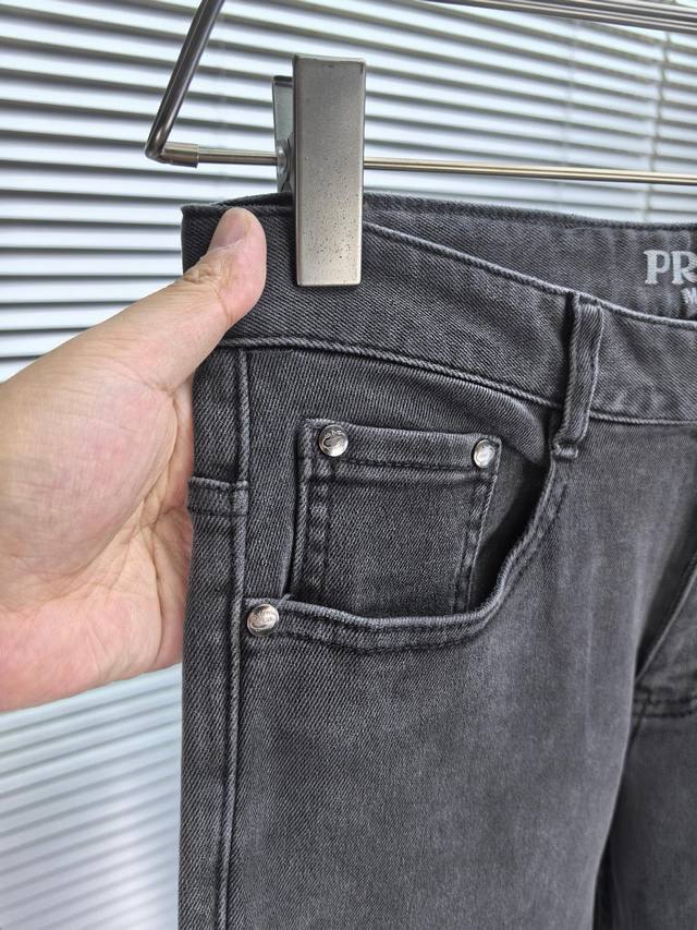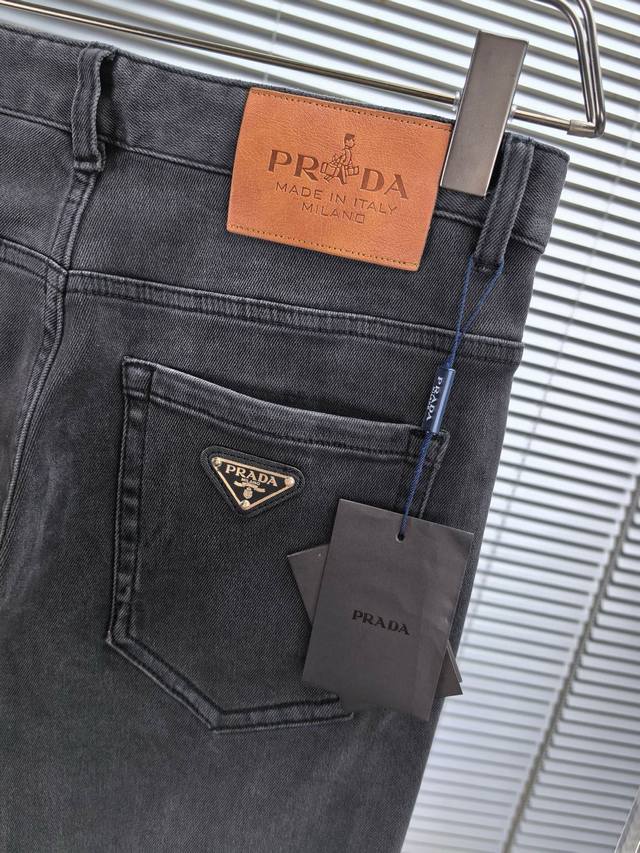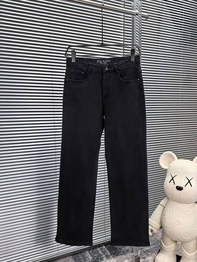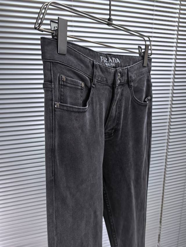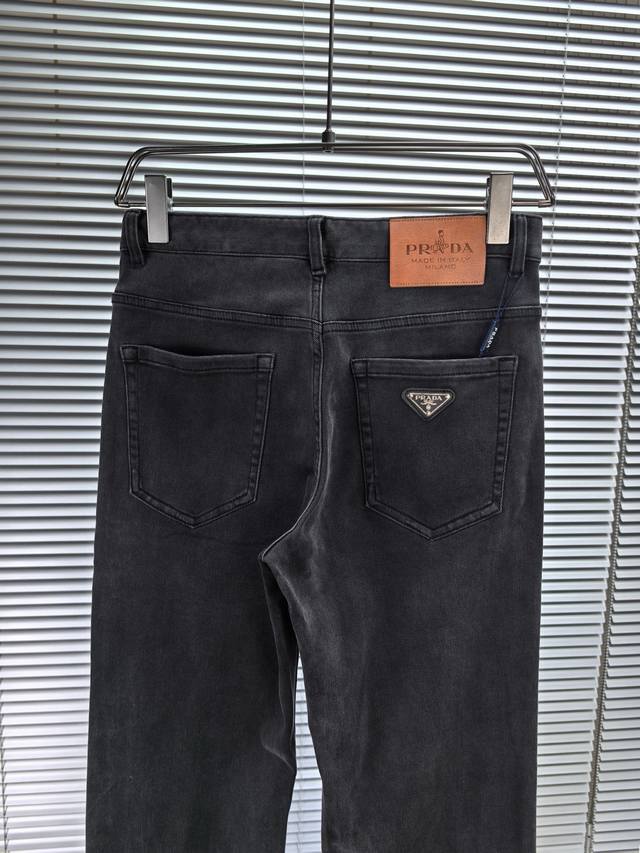 Prada wide-leg jeans, Fall/Winter 2530, new men's wide-leg jeans! Made with heavy-duty washed denim fabric, this custom-made material is softer and more comfortable than regular denim! The entire pair of jeans undergoes a double-wash process, resulting in a comfortable feel, exceptional fineness, and top-notch breathability. All hardware and brand logos are custom-made using top-quality materials. The fabric has excellent elasticity and is incredibly comfortable! The understated design is simple and stylish. Sizes: 29-38 (