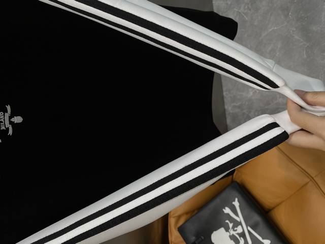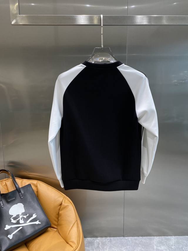 2025 Autumn/Winter New Arrival Air Layer Crew Neck Sweatshirt, featuring the brand logo on the front, creatively reinterpreting the brand's iconic design. Made with 400g Lyocell air layer fabric, its characteristics include: soft, breathable, warm, comfortable, lightweight, and with a good drape. The quadruple fiber structure makes the fabric less prone to wrinkles. Matching ribbed collar, cuffs, and hem; Color: Black; Sizes: XS-L; Available the next day.