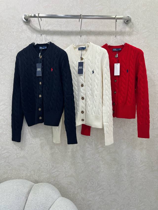 Ralph Laure 2025 New Arrival - Highly Recommended Cable Knit Cardigan (80% Wool, 20% Cashmere). Quality comparable to original boutique orders. A must-have for quality enthusiasts! Custom-made original buttoned round neck cable knit cashmere sweater with a rich vintage style! The custom wool and cashmere yarn is incredibly soft and supple! The texture is unbeatable! A must-have for fashionistas with a youthful and stylish look! A playful, sophisticated, retro, and casual style. Versatile fit, flattering on all body types, super stretchy. 3 colors, 3 sizes: S, M, L, D, D.