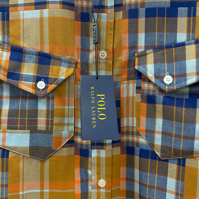 Ralph Lauren 100% Cotton Plaid Shirt. Made of 100% pure cotton, this shirt features naturally gentle cotton fibers that are non-irritating to the skin and suitable for all skin types. The high-density weave gives the fabric a crisp texture, making it resistant to deformation and pilling. It maintains its neat shape even after multiple washes, ensuring durability. The loose fit provides a flattering silhouette with smooth, flowing lines from the shoulders to the waist and hem, without any excess wrinkles or bunching. Overall, it's clean, crisp, and comfortable. Sizes: S, M, L, XL.